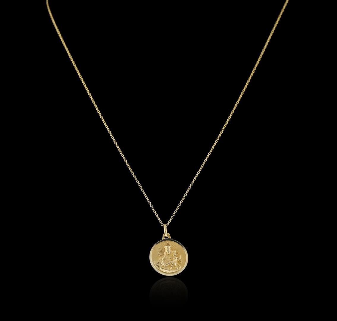 One sacred heart/Mary design pendant with chain featuring: 14KT yellow gold weighing 2.76 grams.