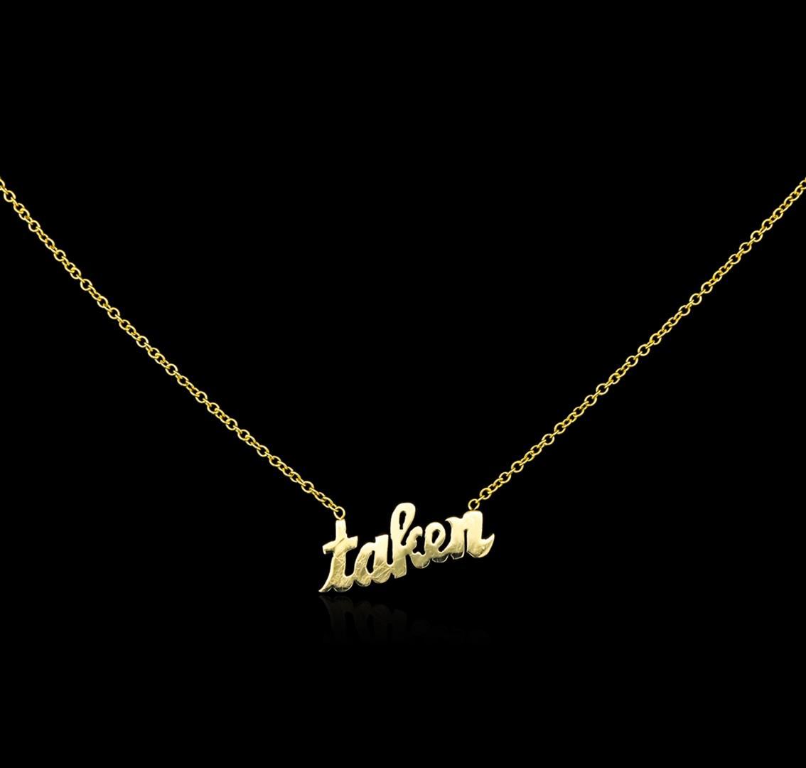 One custom made "taken" necklace featuring: 14KT yellow gold weighing 2.19 grams.