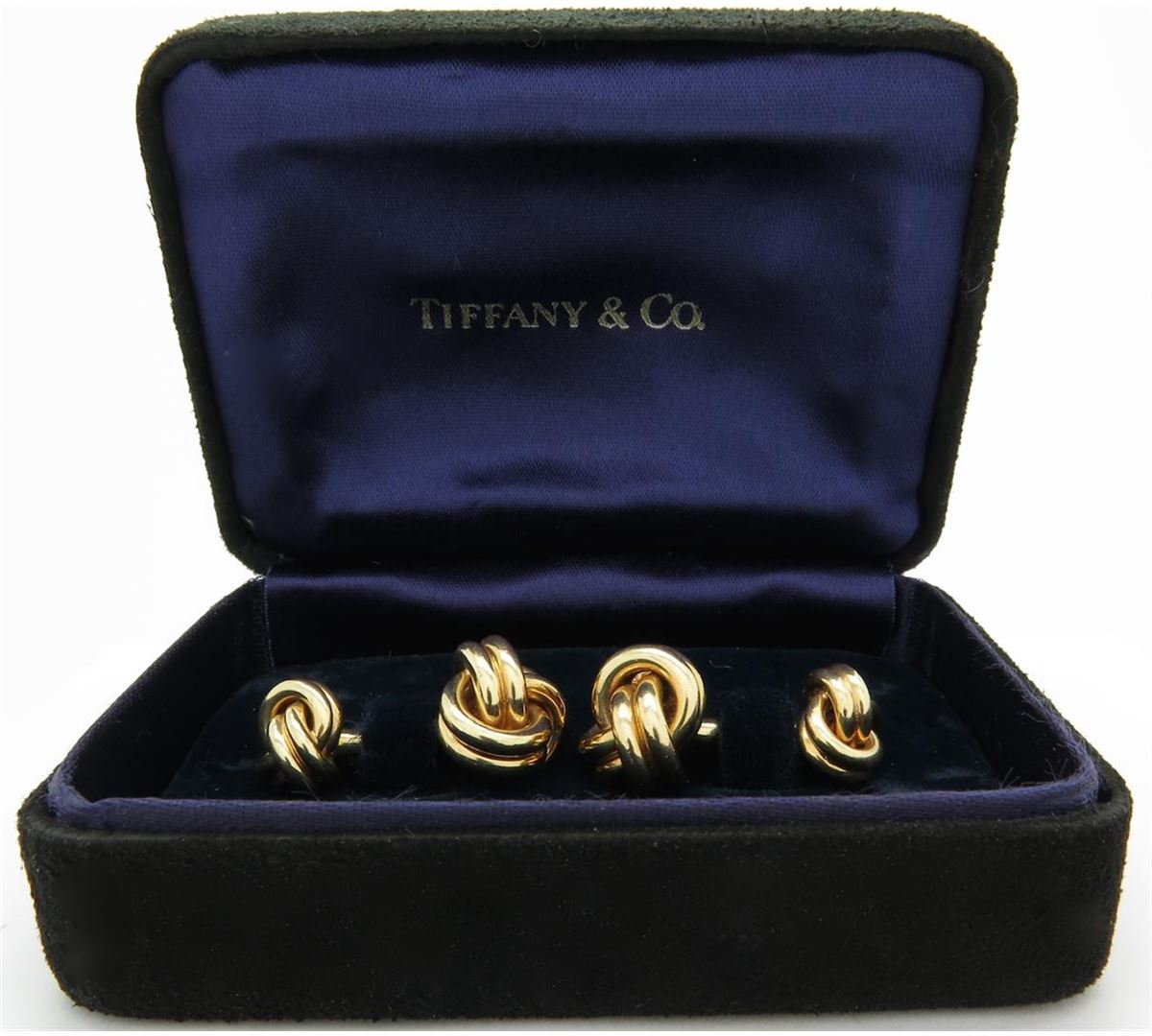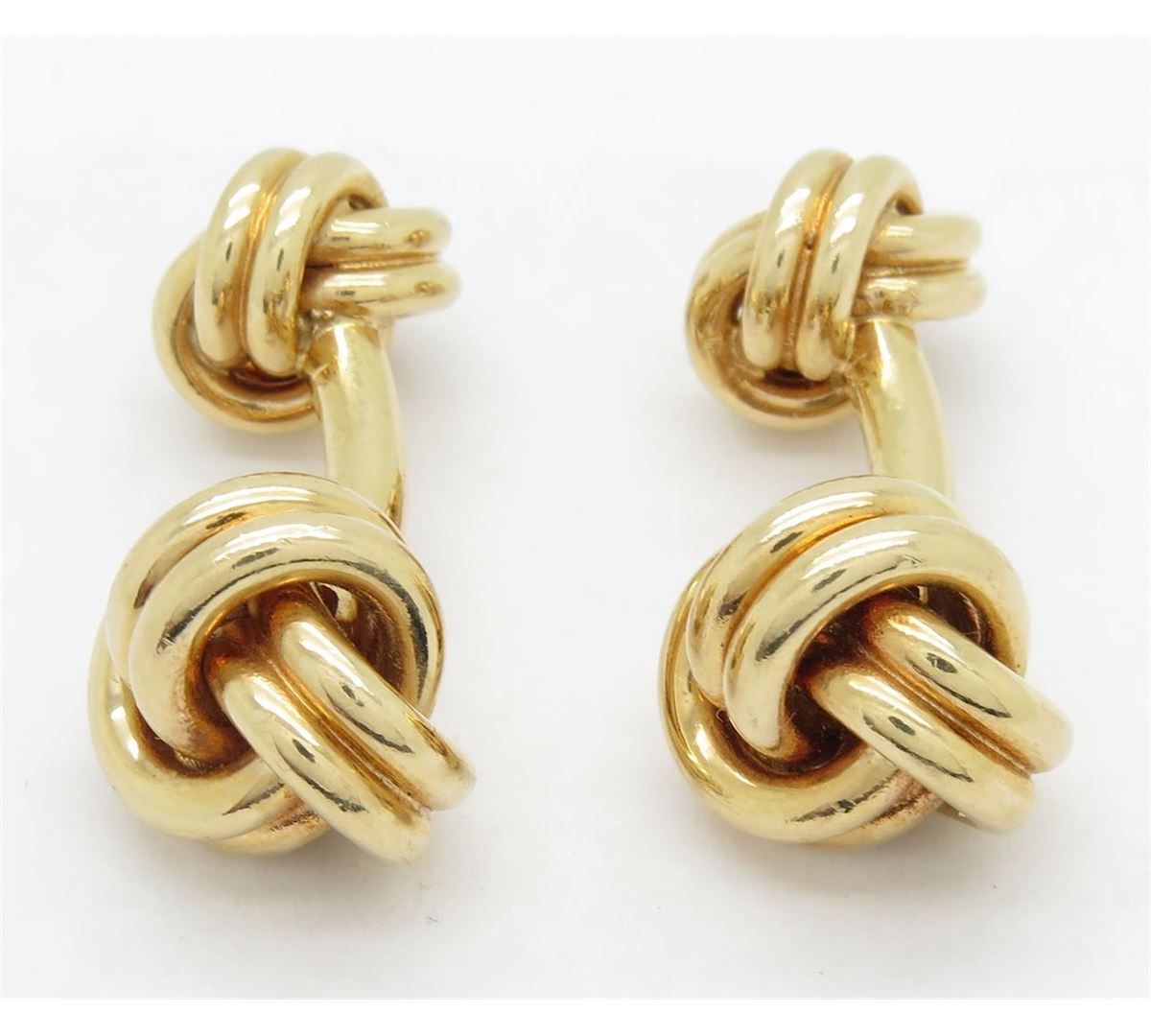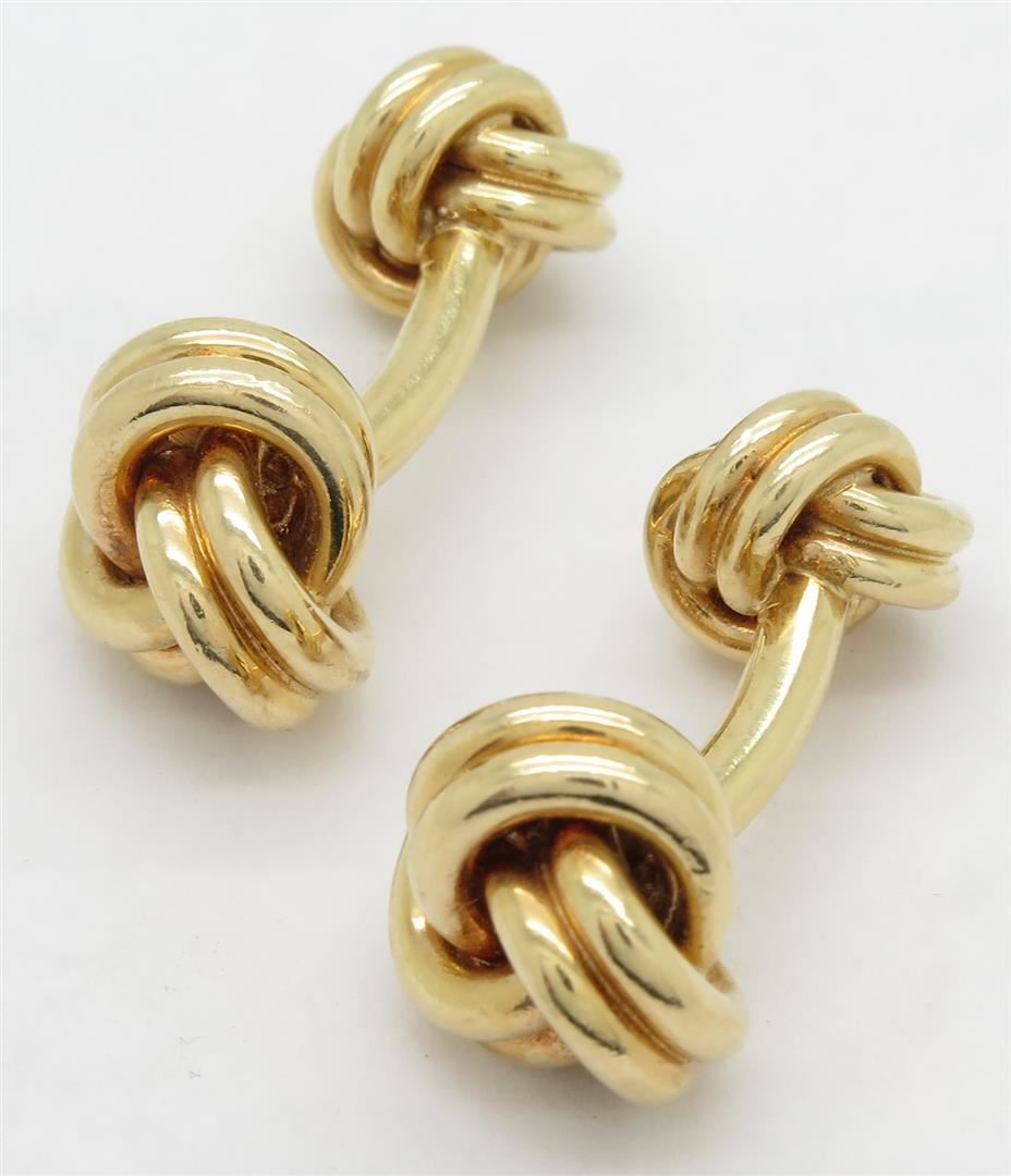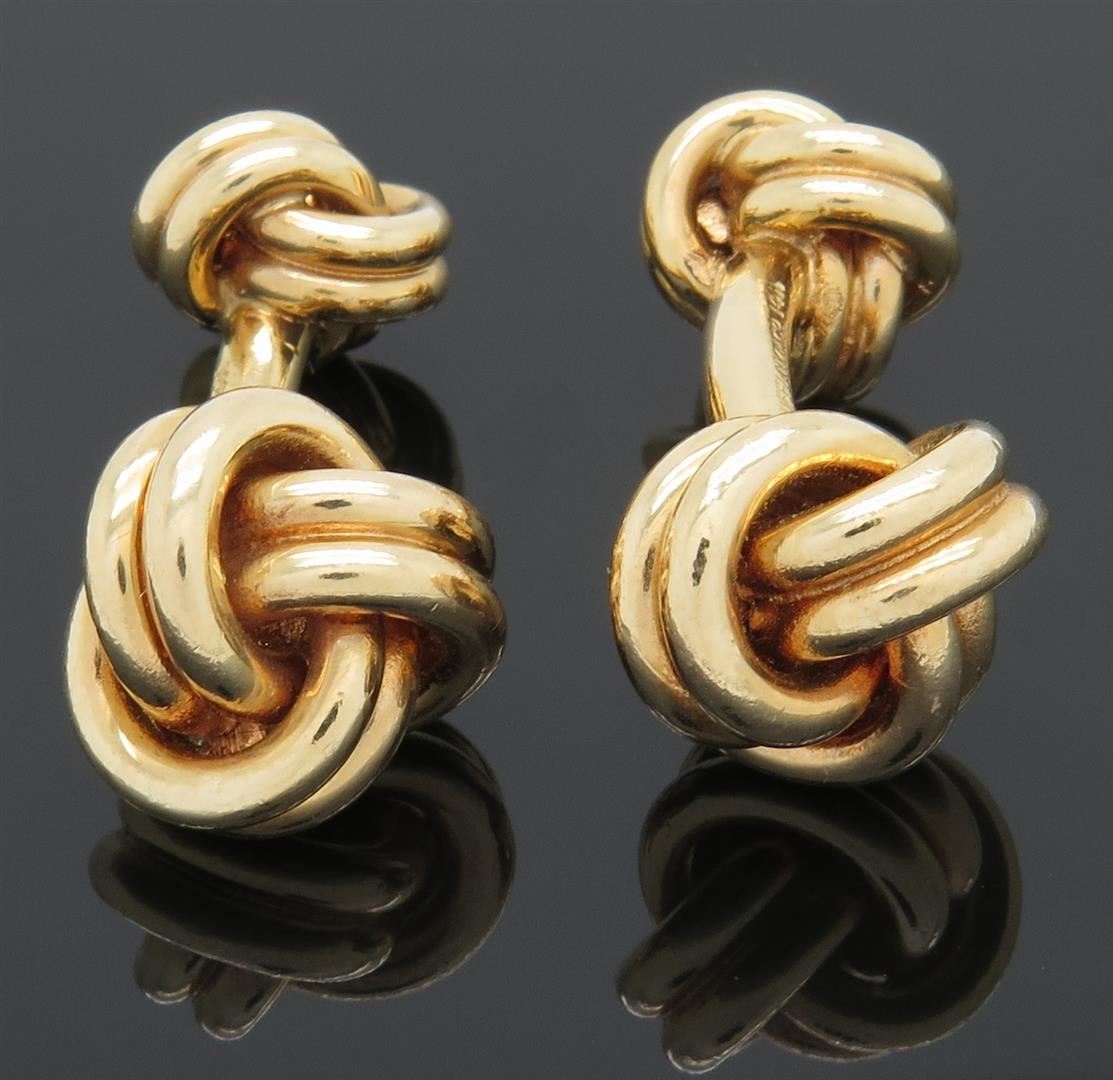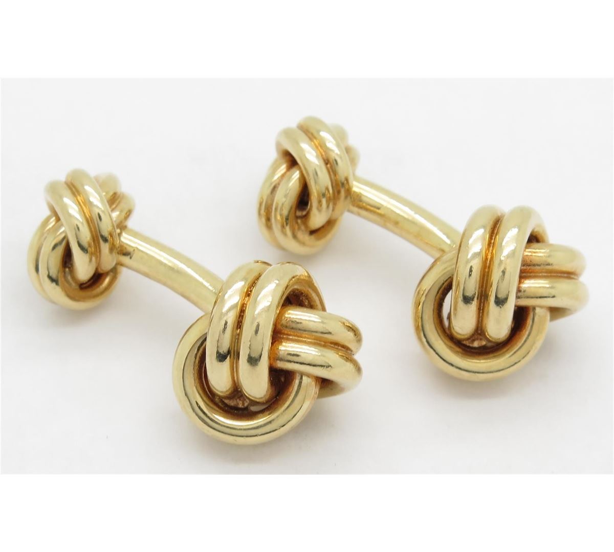 Two tested 14K yellow gold designer Tiffany & Co. cuff links. Size: 1 1/8", Weight: 22 grams. Original box included.