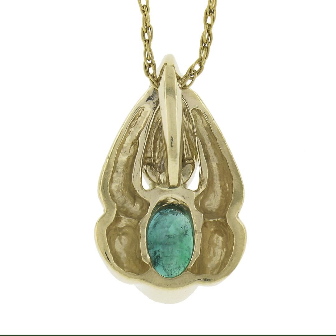 14k Gold 0.77ctw Oval Emerald Solitaire & Diamond Pendant & 18.5" Rope Chain