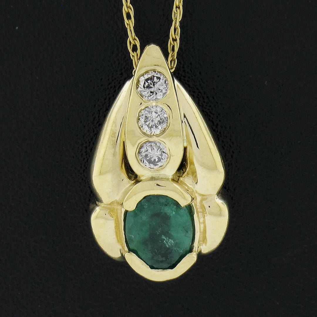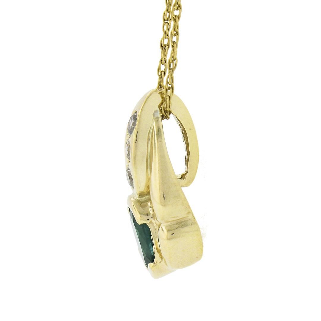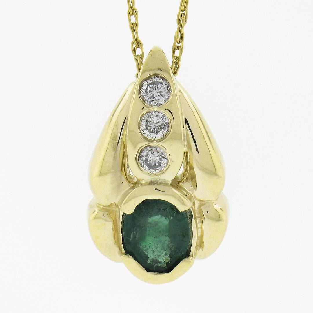14k Gold 0.77ctw Oval Emerald Solitaire & Diamond Pendant & 18.5" Rope Chain