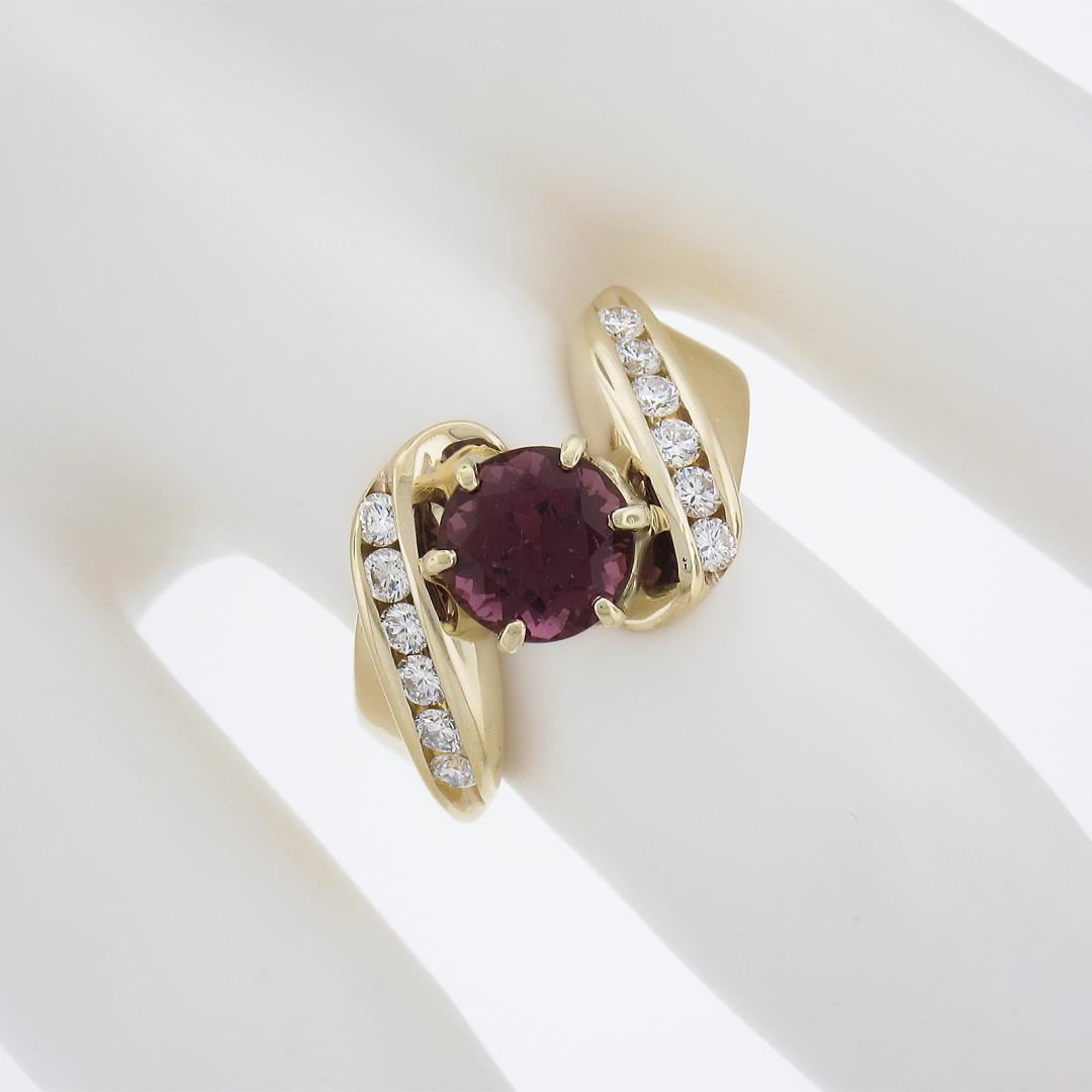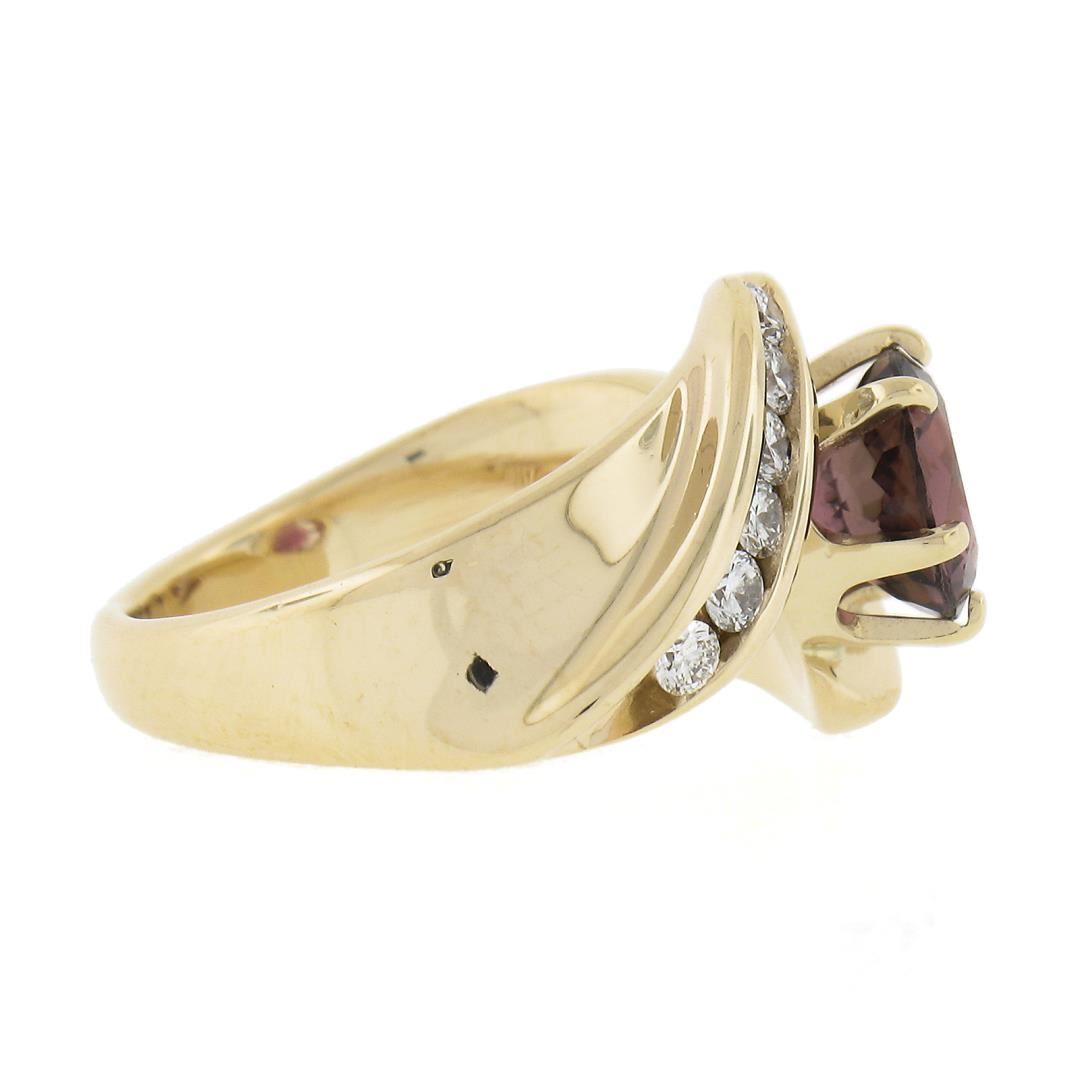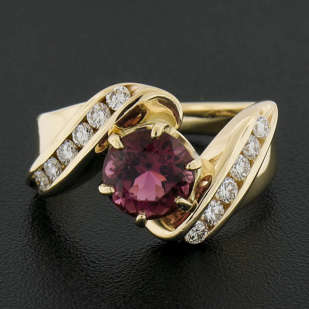 14k Gold Round Pink Tourmaline w/ 0.30 ctw Diamond Channel Accents Bypass Ring