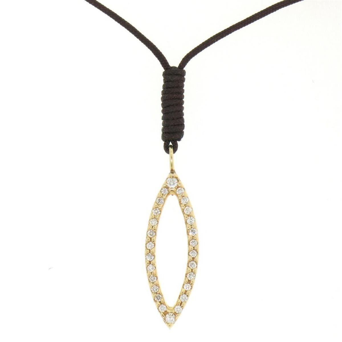 One NEW 14k Rose Gold 0.30ctw Diamond Marquise Pendant Necklace w/ 16" Brown Cord. Item Details: Material: 14K Solid Rose Gold, Weight: 1.6 Grams, Stone(s): (26) Natural Genuine Diamonds - Round Brilliant Cut - Shared Prong Set - VS2 Clarity - G Color - 0.30ctw (approx.), Chain Type: Dark Brown Cord, Chain Length: 16 Inches, Clasp: Spring Ring - Solid 14k Yellow Gold, Width: 7.3mm, Height (w/ Bail): 24.75mm, Thickness: 2.16mm. Condition: New w/o Tag