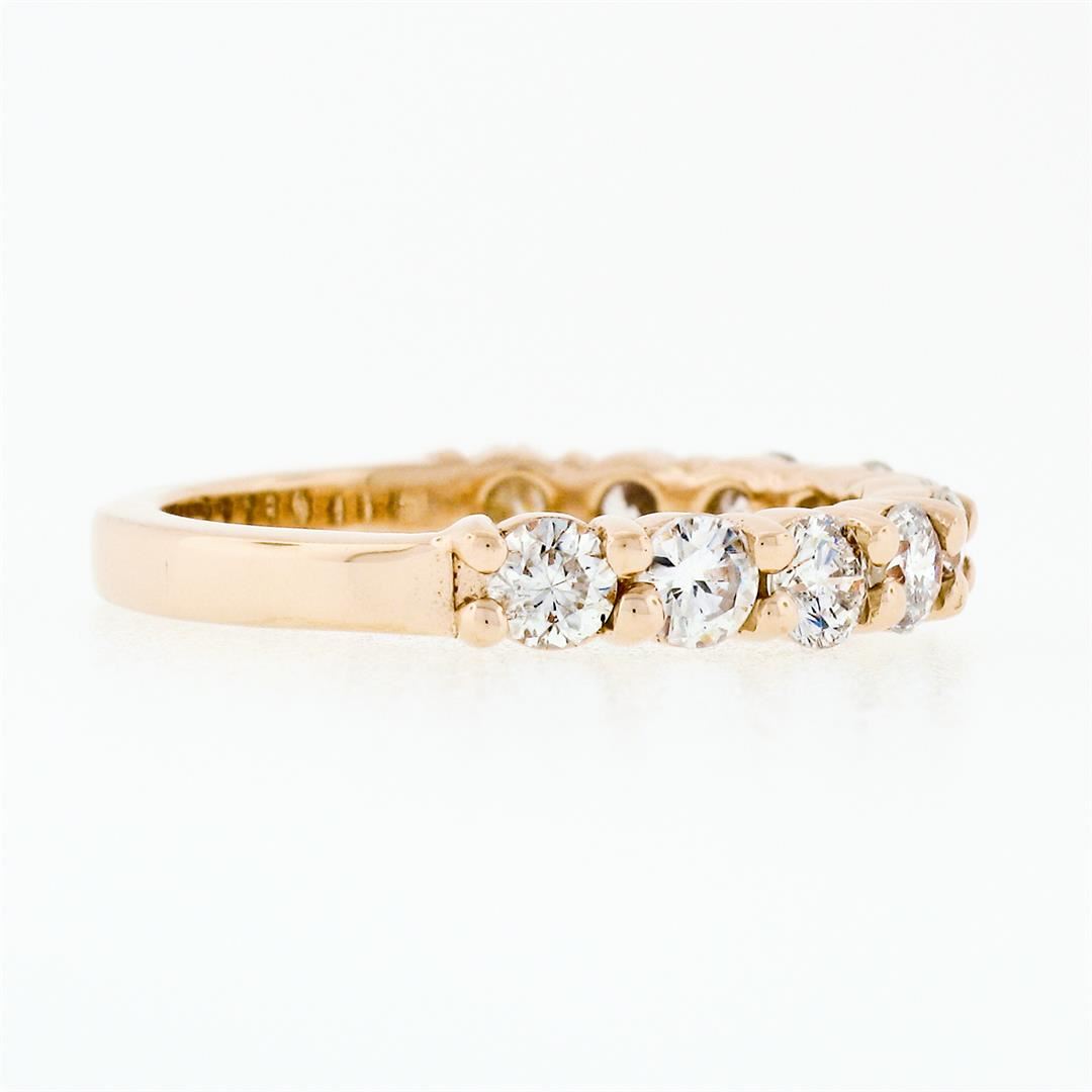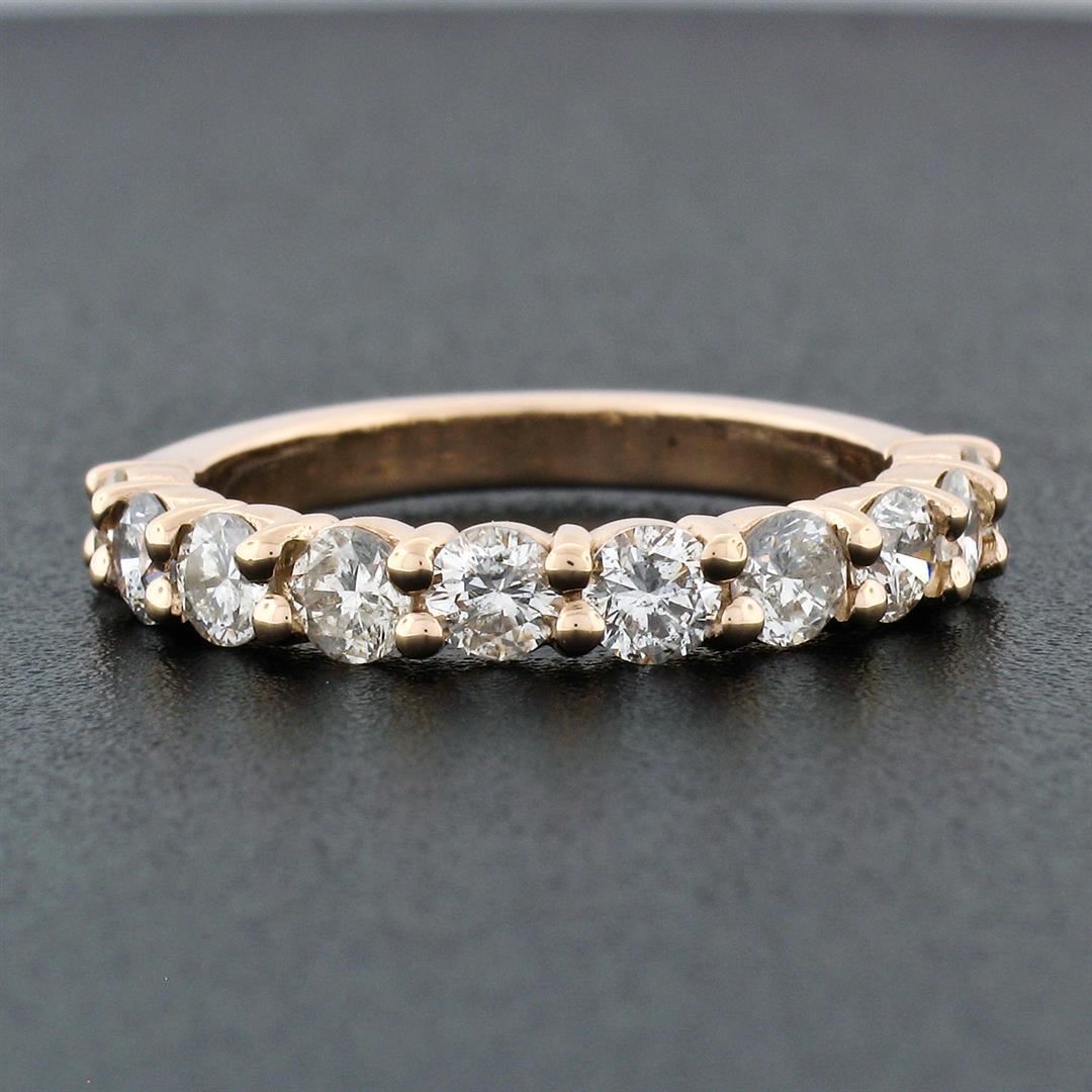 An estate solid 14k rose gold band ring, with 10 round brilliant cut natural diamonds (G/H - SI1/SI2 ; 1.15ctw). The ring is size 9, weighs a total of 3.19 grams, and measures 3.3mm wide.