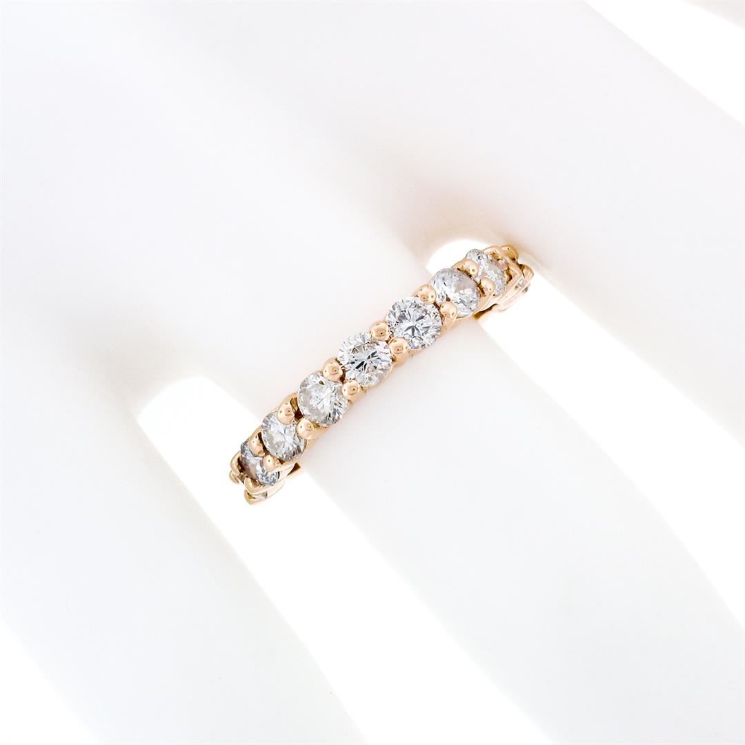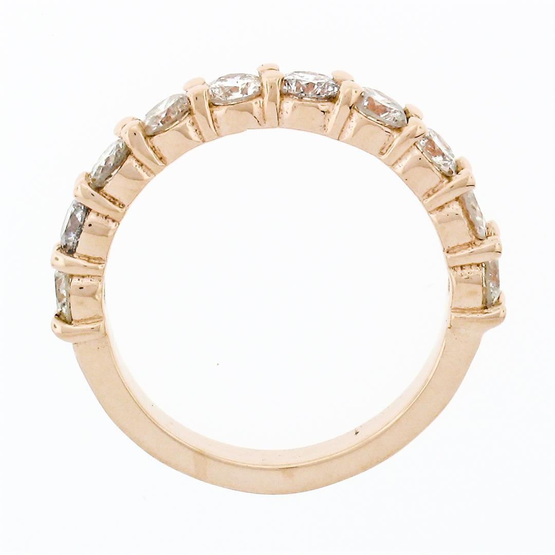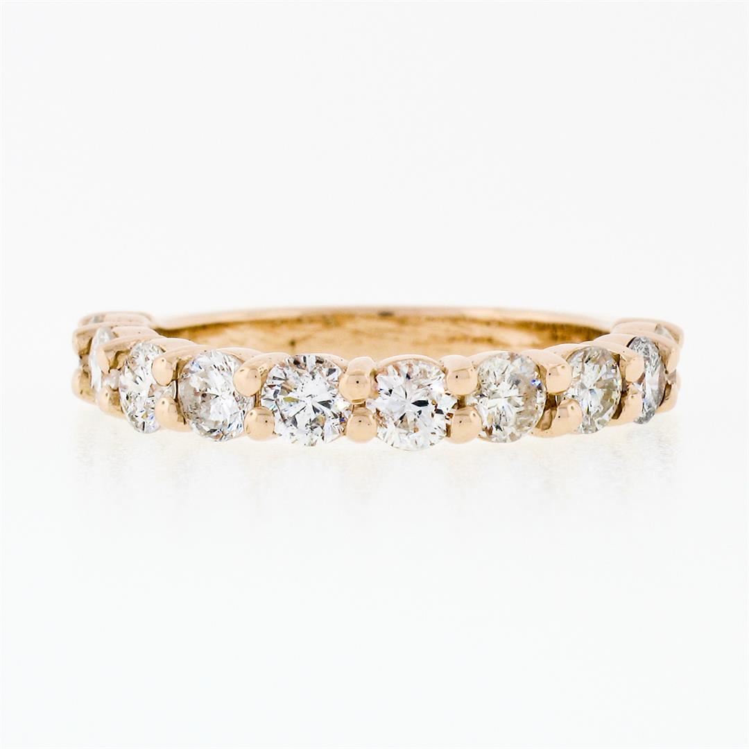 An estate solid 14k rose gold band ring, with 10 round brilliant cut natural diamonds (G/H - SI1/SI2 ; 1.15ctw). The ring is size 9, weighs a total of 3.19 grams, and measures 3.3mm wide.