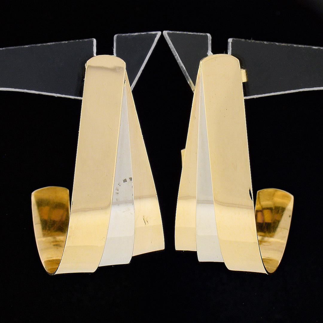 A solid 14k tri color cuff earrings. The earrings measure approximately 28.30x15.80mm and weigh a total of 8.89 grams.
