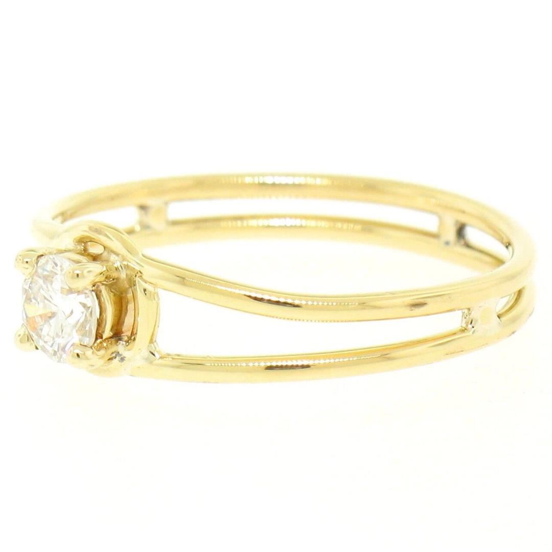 An estate solid 14k yellow gold solitaire open band ring, with 1 round brilliant cut natural diamond (H- VS1; 0.21ct). The ring is size 5.0, weighs a total of 1.7 grams, and measures 5.6mm wide.