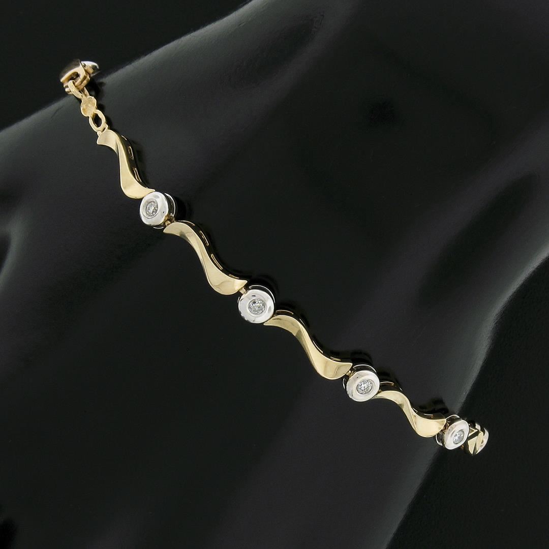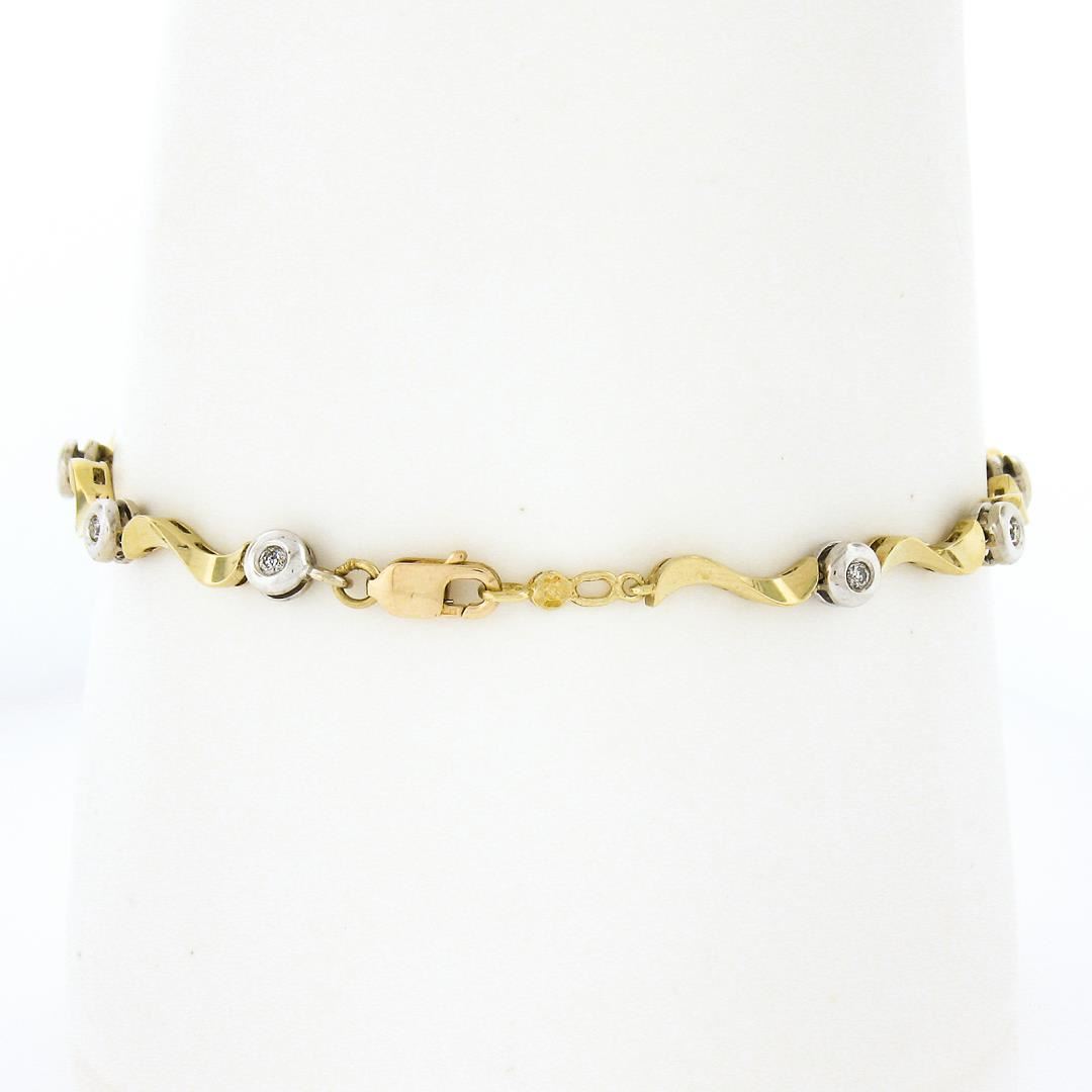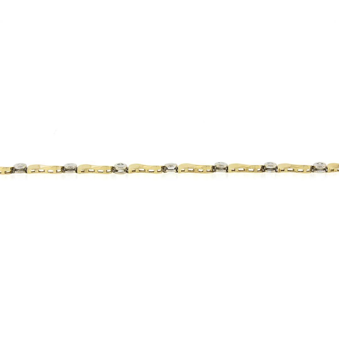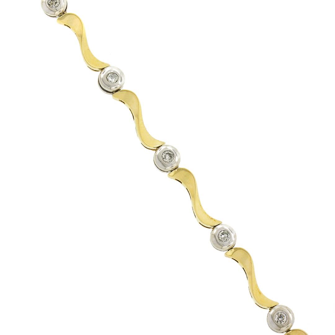 A solid 14k yellow & white gold link bracelet, with 11 round cut natural diamonds (H/I - I1/I2 ; 0.25ctw). It weighs a total of 5.66 grams, measures 4mm wide, and measures 7 inches in length.