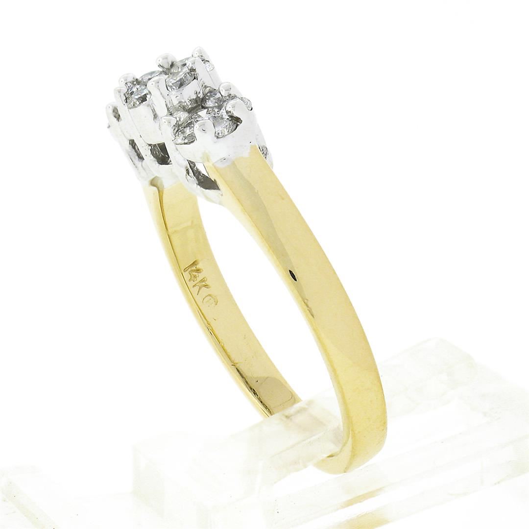 A solid yellow and white gold ring, with 19 roun brilliant cut natural diamonds (G/H - VS2/SI1 ; 0.55ctw). The ring is size 7.0, weighs a total of 3.54 grams, and measures 5.65mm wide.