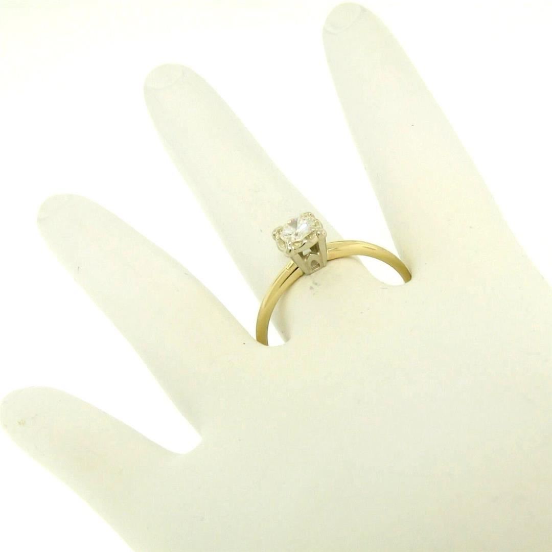 14k Two Tone Gold 0.40ct Illusion Prong Set Round Diamond Solitaire Band Ring. Please see photos and description for all available information. An estate solid white and yellow gold solitaire engagement ring, with 1 round brilliant cut natural diamond (H-