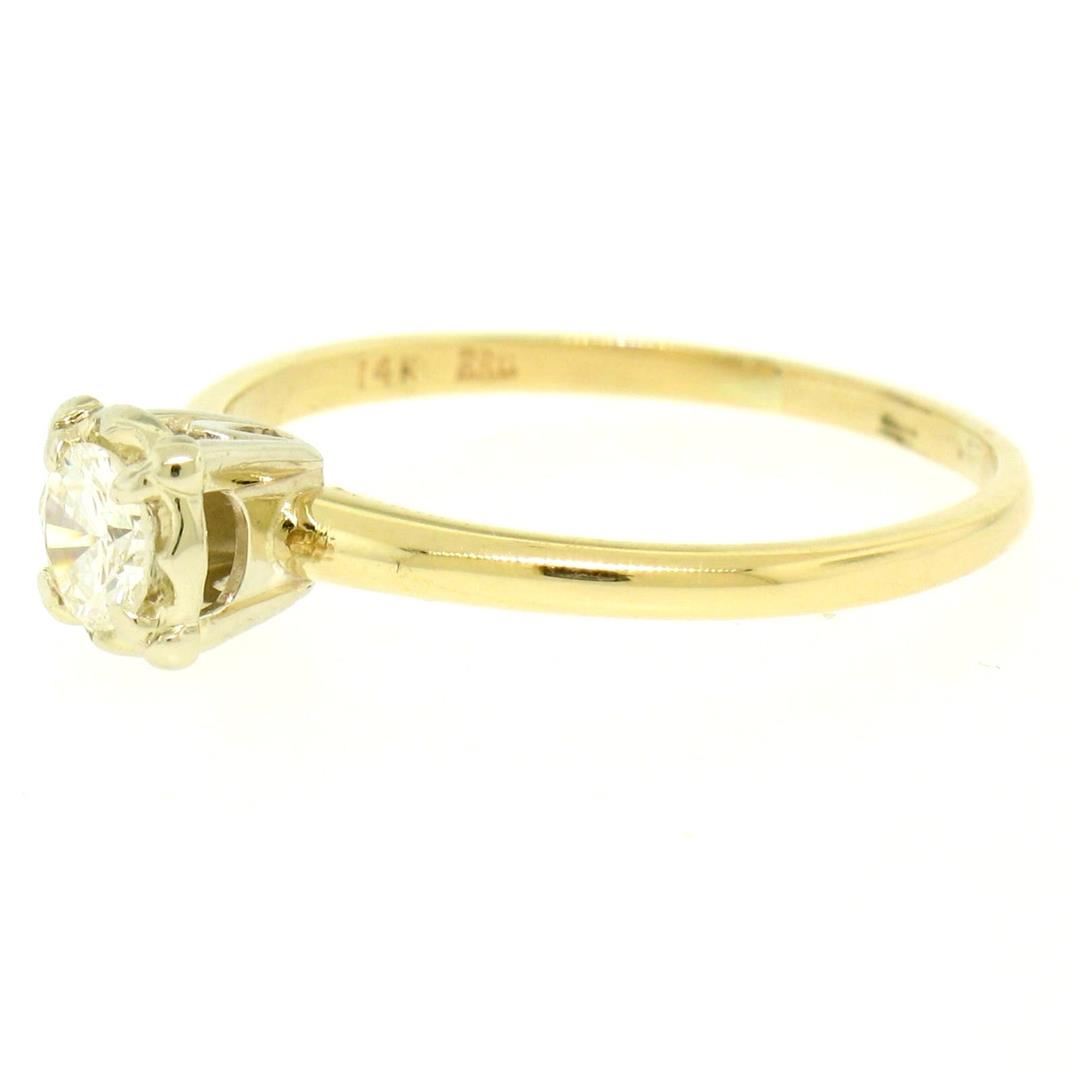 14k Two Tone Gold 0.40ct Illusion Prong Set Round Diamond Solitaire Band Ring. Please see photos and description for all available information. An estate solid white and yellow gold solitaire engagement ring, with 1 round brilliant cut natural diamond (H- VS2 ; 0.40ct). The ring is size 9.0, weighs a total of 2.2 grams, and measures 6.15mm wide.