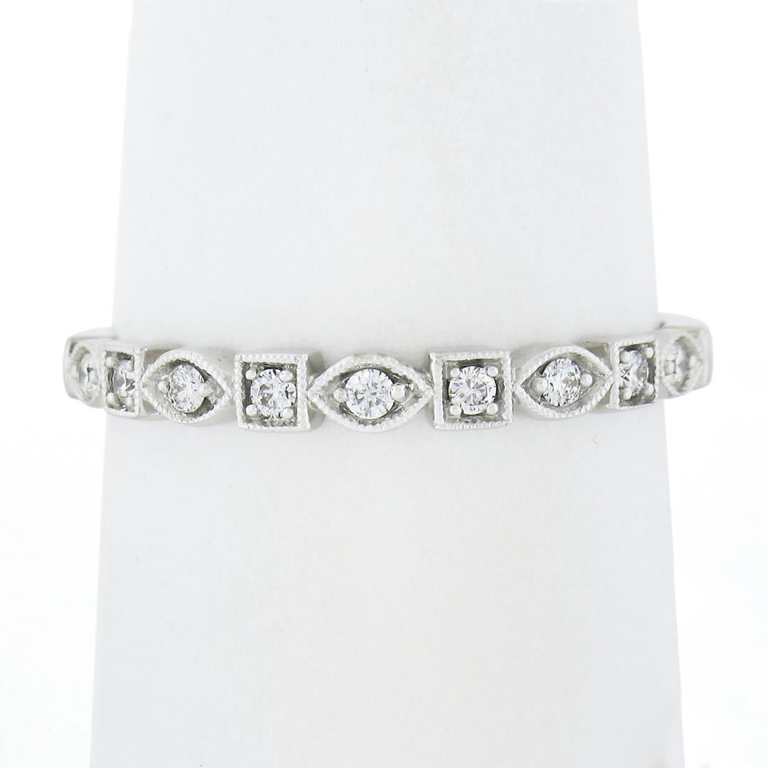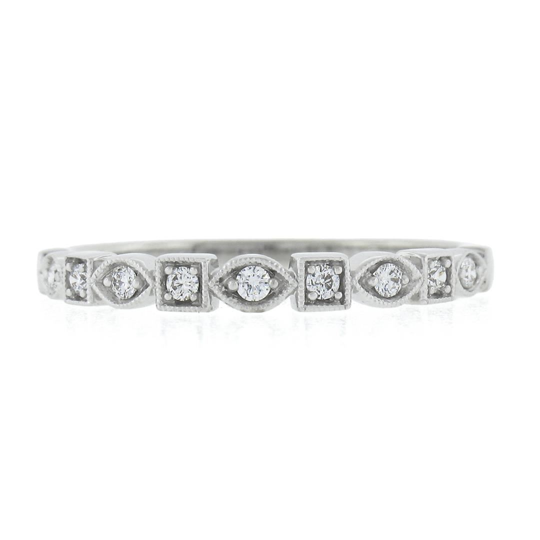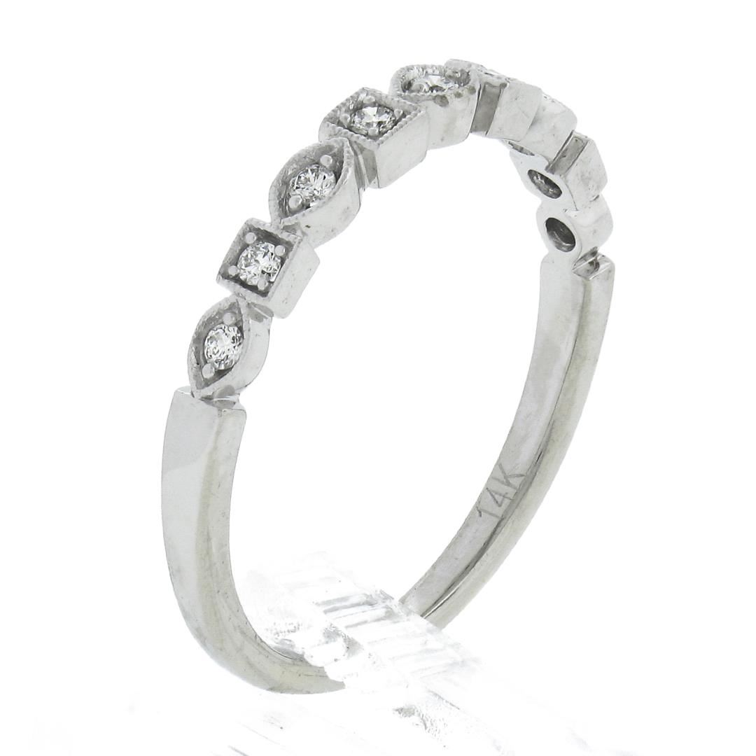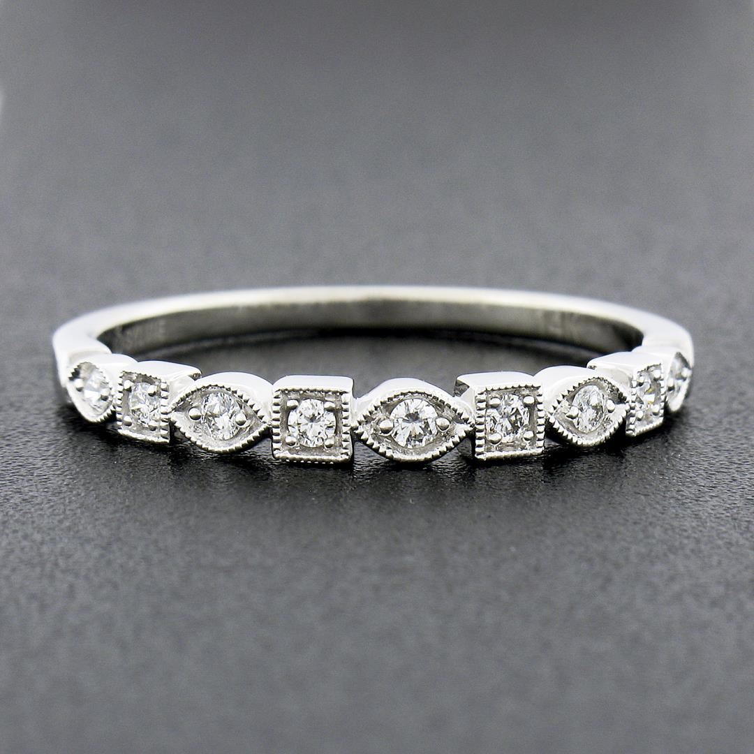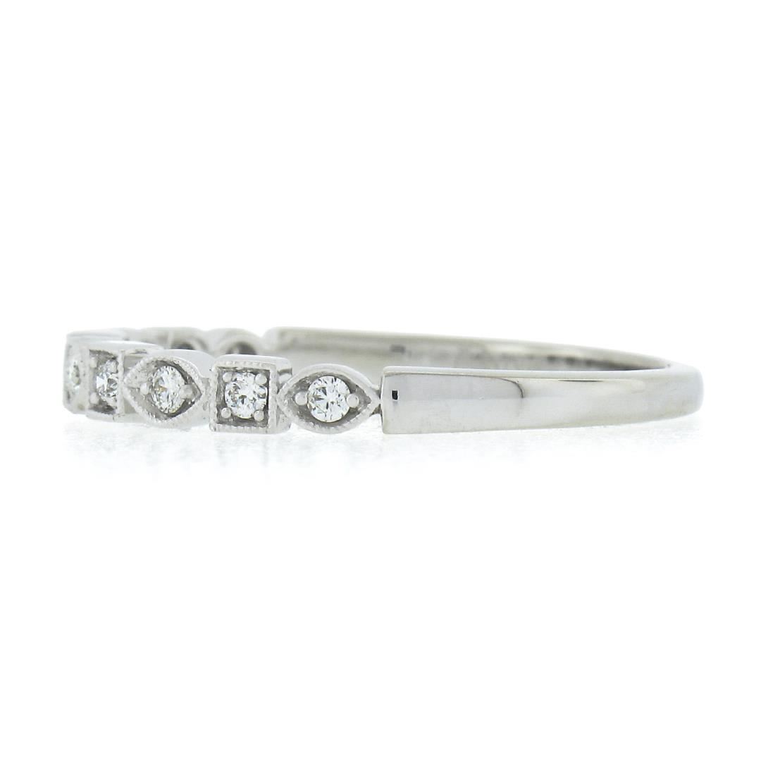 A solid 14k white gold band ring, with 9 round cut natural diamonds (G/H - VS1/VS2; 0.17ctw). The ring is size 9.5, weighs a total of 2.53 grams, and measures 2.8mm wide.