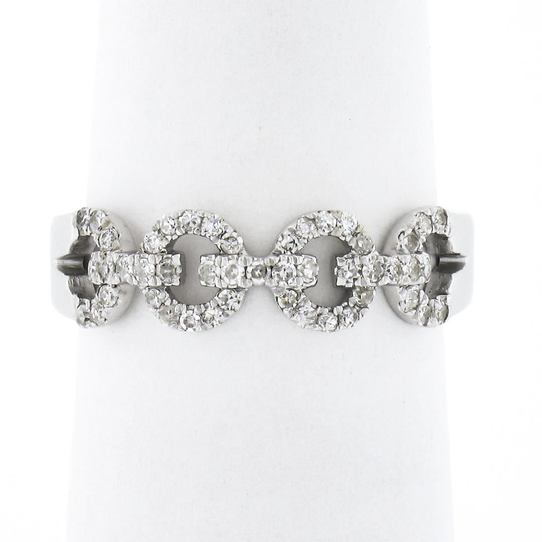 A solid 14k white gold ring, with 47 round cut natural diamonds (H-J - SI1-I1 ; 0.23ctw). The ring is size 6.0, weighs a total of 3.09 grams, and measures 5.4mm wide.