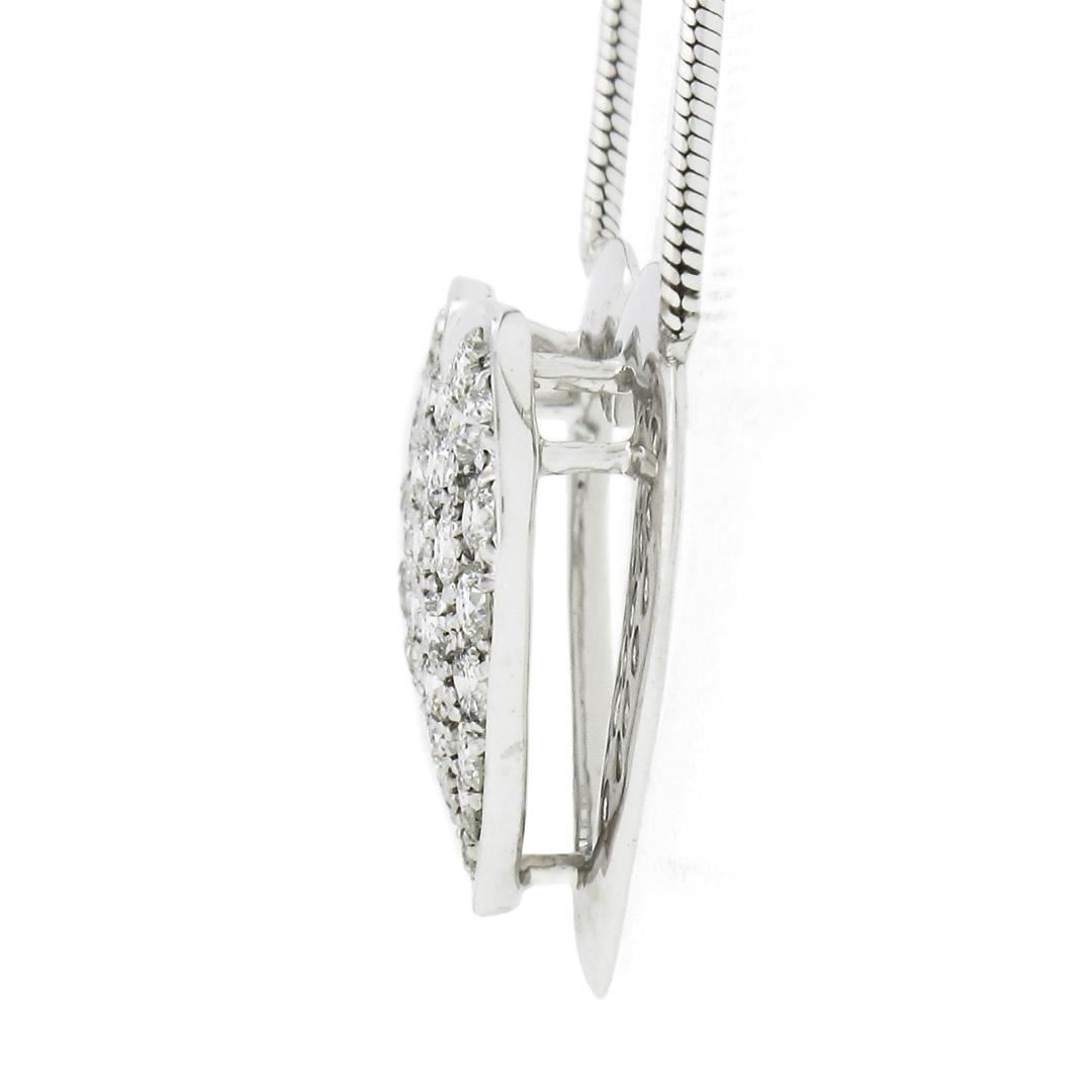 A solid 14k white gold pendant necklace, with 30 round brilliant cut natural diamonds (G/H - VS2/SI1 ; 0.50ctw). 18 inch snake link chain, 6.23 grams total weight, pendant measures 17.4x17.5mm.