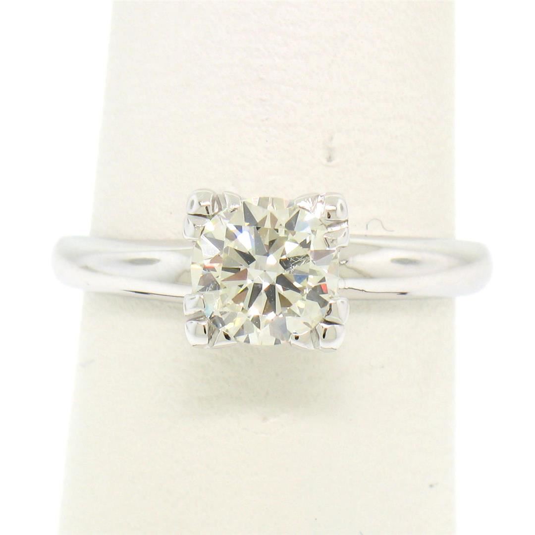 One Vintage 14k White Gold 0.83ct I VVS2 Round Brilliant Cut Diamond Solitaire Ring. Item Details: Material: 14k Solid White Gold, Weight: 2.9 Grams, Stone(s): (1) Natural Genuine Diamond - Round Brilliant Cut - Prong Set - I Color - VVS2 Clarity, Total Carat Weight: 0.83 (approx.), Ring Size: 5.75 (We can custom size this ring.), Ring Width: 6.56mm, Ring Height: 6.74mm rise off the finger, Condition: Vintage piece. Excellent, ready to wear condition!
