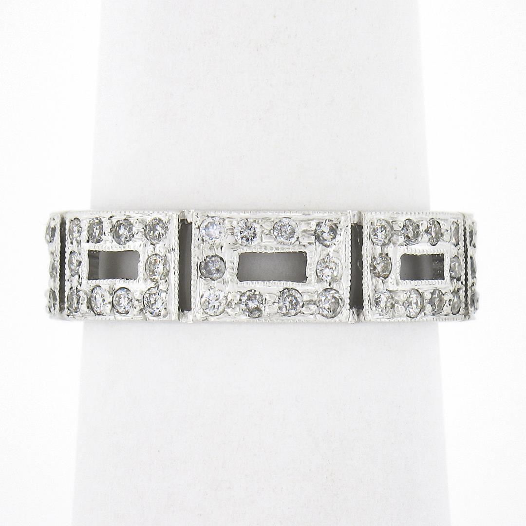 14k White Gold 0.87 ctw Pave Set Diamond Open Rectangular Near Eternity Band Rin