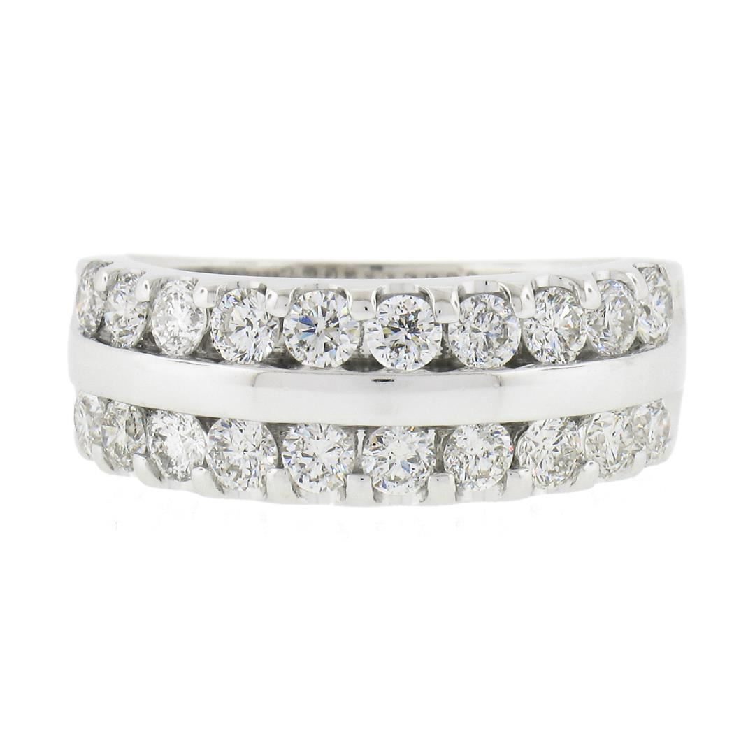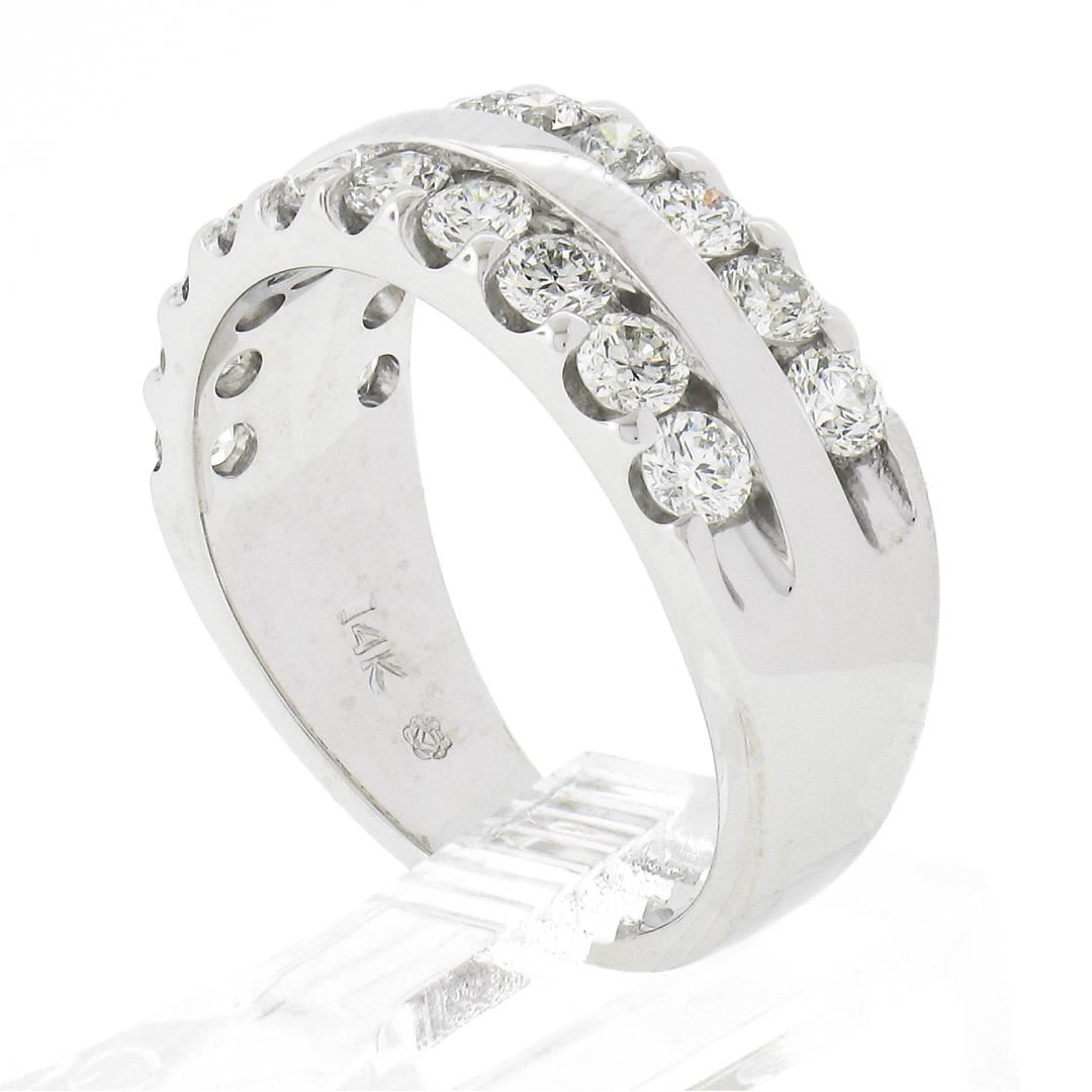 A solid 14k white gold band ring, with 20 round cur natural diamonds (G/H - SI1/SI2 w/ a few I1 ; 1.20ctw). The ring is size 7.0, weighs a total of 6.78 grams, and measures 7.7mm wide.