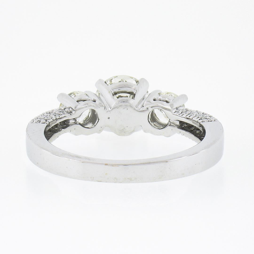 A solid 14k white gold engagement ring, with 1 GIA graded round cut natural diamond (J - VVS2 ; 1.00ct), and 16 round cut natural diamonds (H/I - VS1/VS2 ; 0.70ctw). The ring is size 6.0, weighs a total of 4.43 grams, and measures 6.6mm wide. Comes with all original relevant certifications.