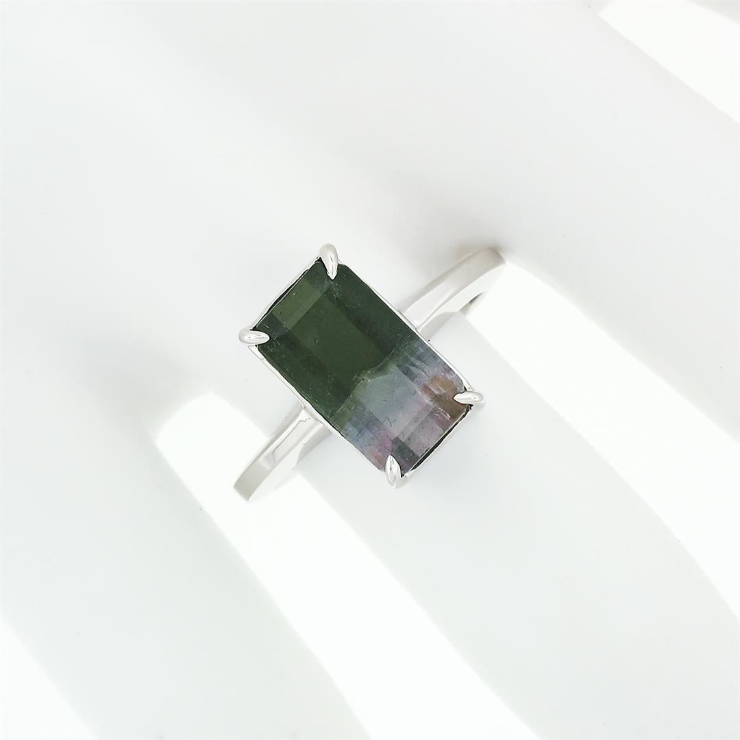 14k White Gold 3.44 ctw Emerald Pink & Green Watermelon Tourmaline Solitaire Rin