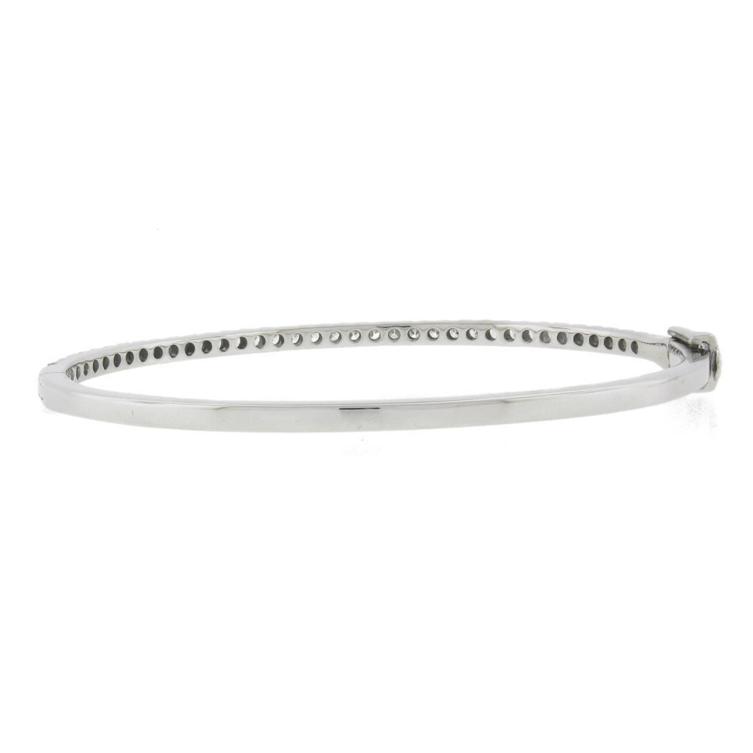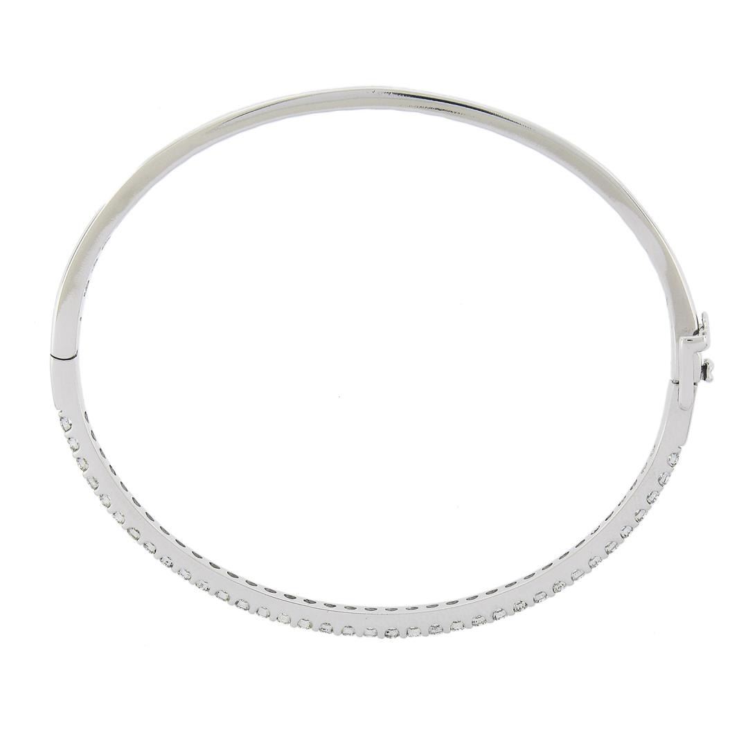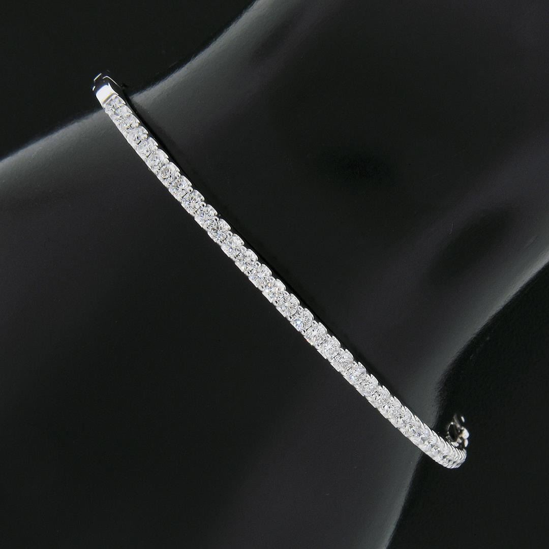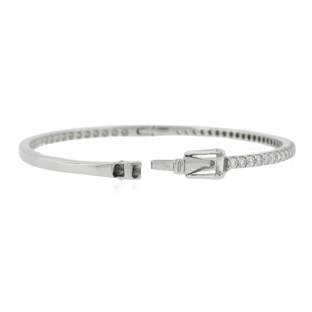14k White Gold 6.7" 1.25ct Round Prong Diamond Stack Hinged Open Bangle Bracelet