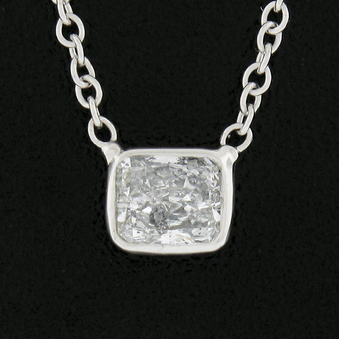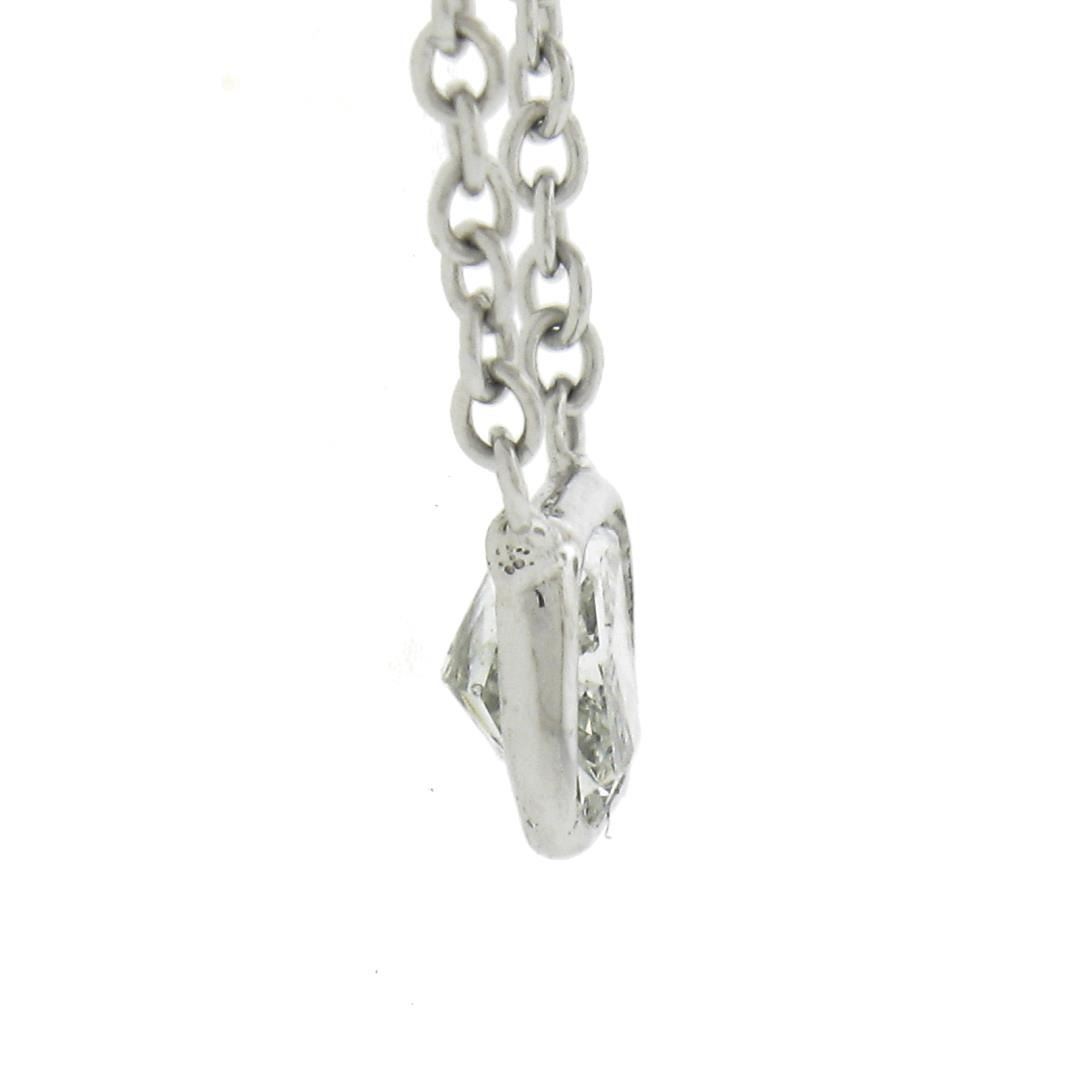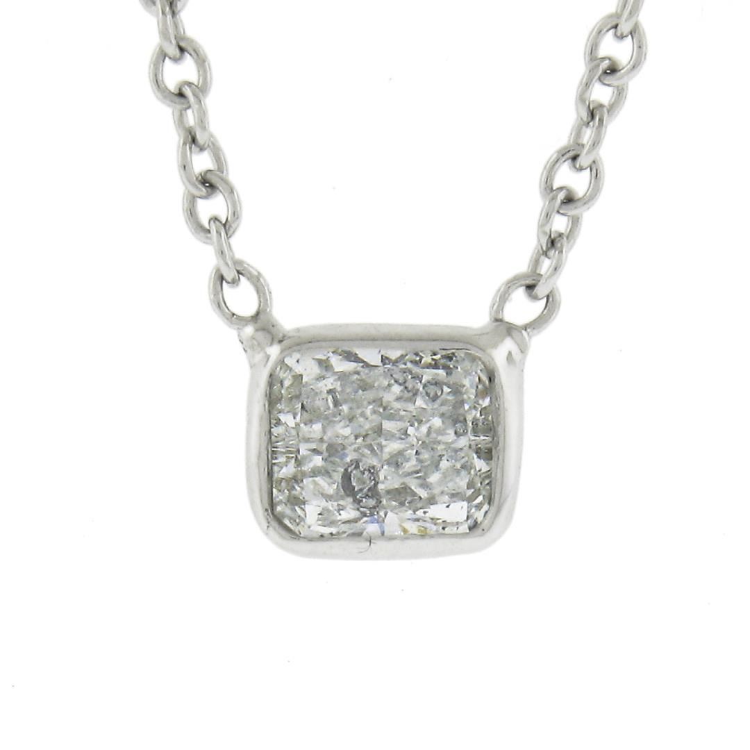 14k White Gold GIA .27ct Rectangular Light Green Diamond Solitaire Pendant Chain