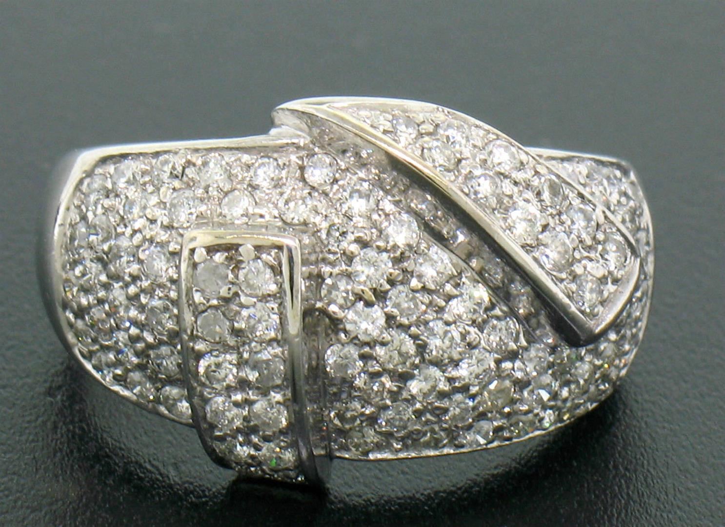 An estate solid 14k white gold wrap dinner ring. with numerous of round brilliant cut natural diamonds (G/H - SI1/SI2 ; 1.50ctw). The ring is size 6.5, weighs a total of 7.10 grams, and measures 20.44mm wide.