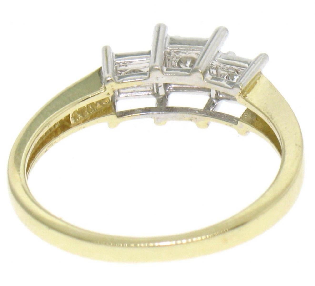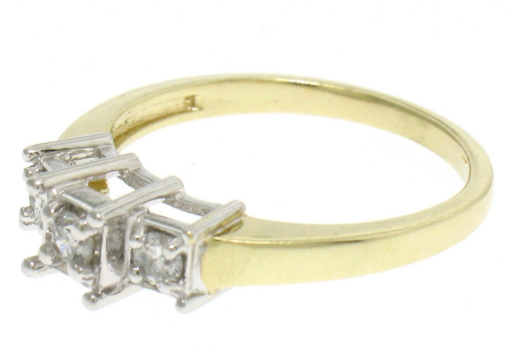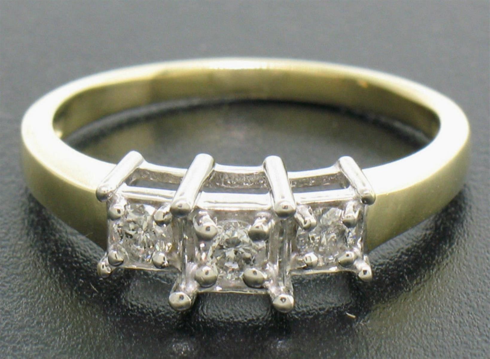 One Estate 14k Yellow Gold 0.19ctw Illusion Set Round Brilliant Diamond 3 Stone Ring. Item Details: Material: 14k Solid Yellow Gold, Weight: 3.1 Grams, Stone(s): (3) Natural Genuine Diamonds - Round Brilliant Cut - Illusion Prong Set - G Color - SI2 Clarity, Total Carat Weight: 0.19 (approx.), Ring Size: 7.0 (We can custom size this ring.), Ring Width: 5.25mm, Condition: Estate piece. Excellent condition!