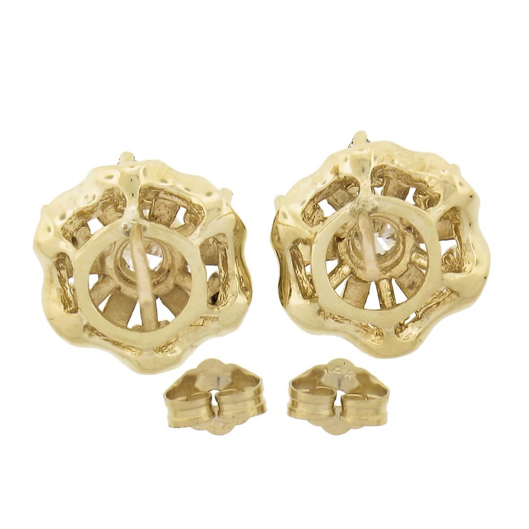 A solid 14k yellow gold stud earrings, with 14 round cut natural diamonds (H/I - VS2-SI2 ; 0.50ctw). The earrings measure approximately 12.9mm and weigh a total of 5.35 grams.