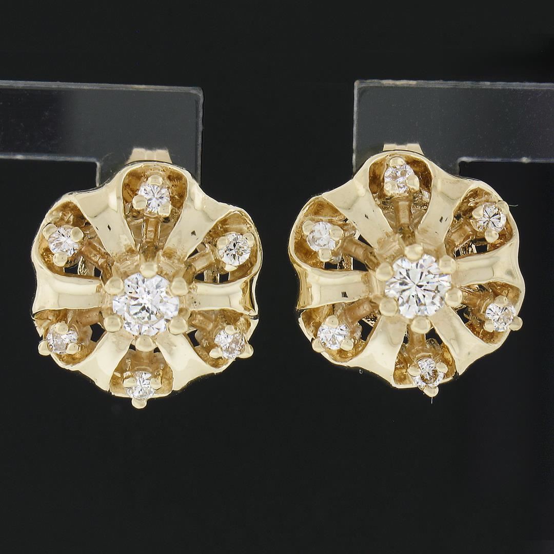 A solid 14k yellow gold stud earrings, with 14 round cut natural diamonds (H/I - VS2-SI2 ; 0.50ctw). The earrings measure approximately 12.9mm and weigh a total of 5.35 grams.