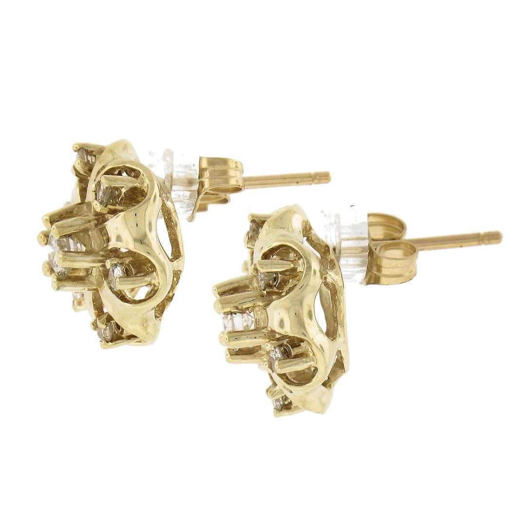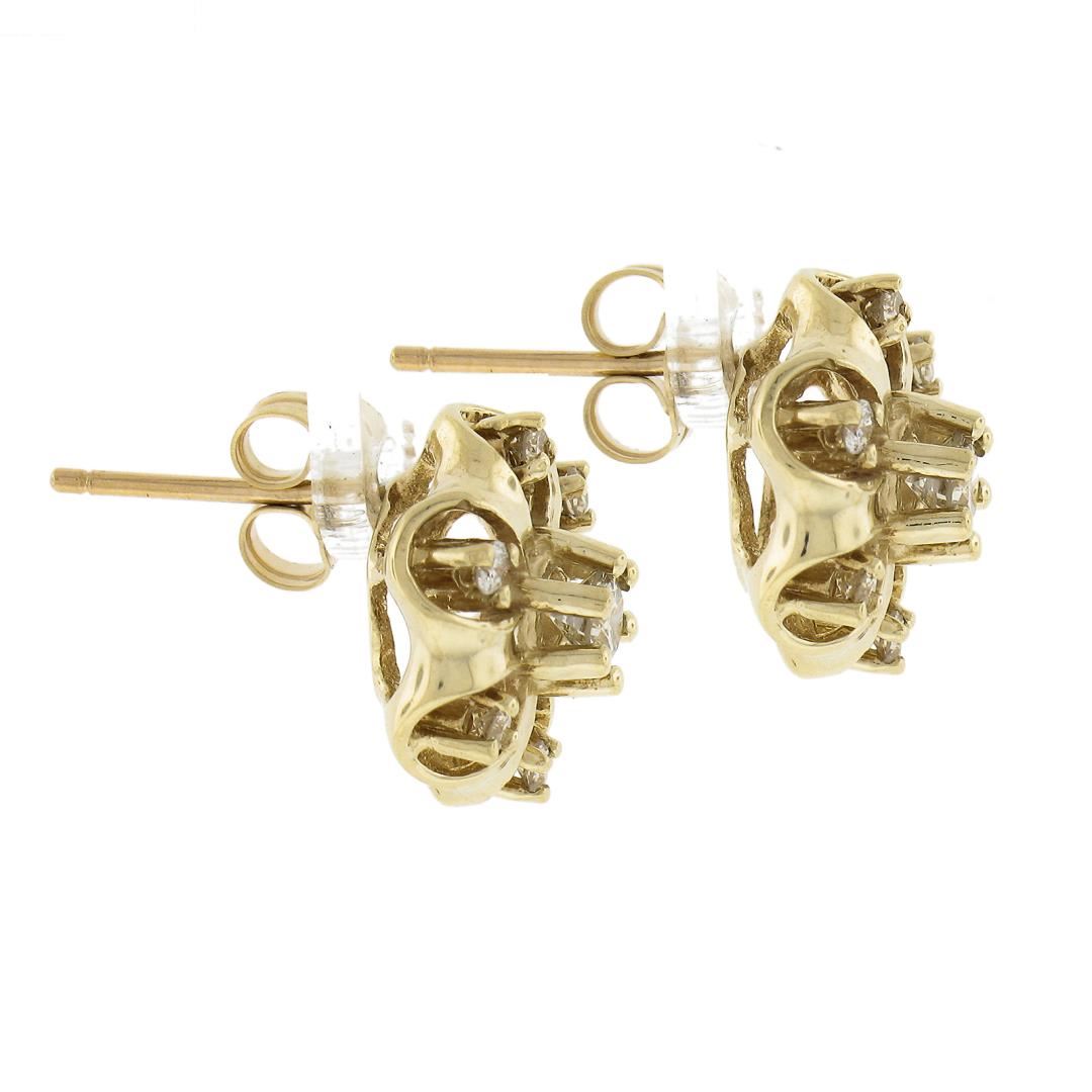 A solid 14k yellow gold stud earrings, with 14 round cut natural diamonds (H/I - VS2-SI2 ; 0.50ctw). The earrings measure approximately 12.9mm and weigh a total of 5.35 grams.