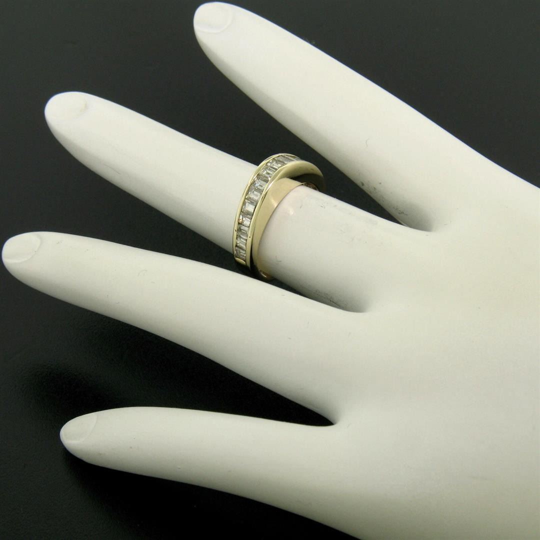 A like new 14k yellow gold domed band ring with 1.0ctw of channel set baguette cut diamonds (H - VS1). The ring is a size 5, weighs a total of 3.90 grams, and is 4.20mm wide.