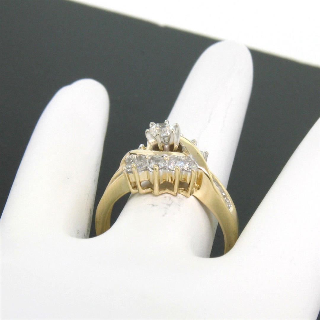14k Yellow Gold 1.00ctw Keepsake Channel Round Diamond Cocktail Engagement Ring. Please see photos and description for all available information. An estate solid 14k yellow gold engagement ring by Keepsake, featuring 17 round brilliant cut natural diamonds (G - I1; 1.00ctw). The ring is size 7.0, weighs a total of 5.1 grams, and measures 13.0mm wide.