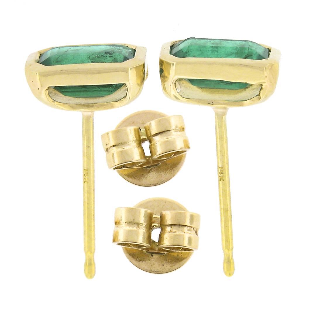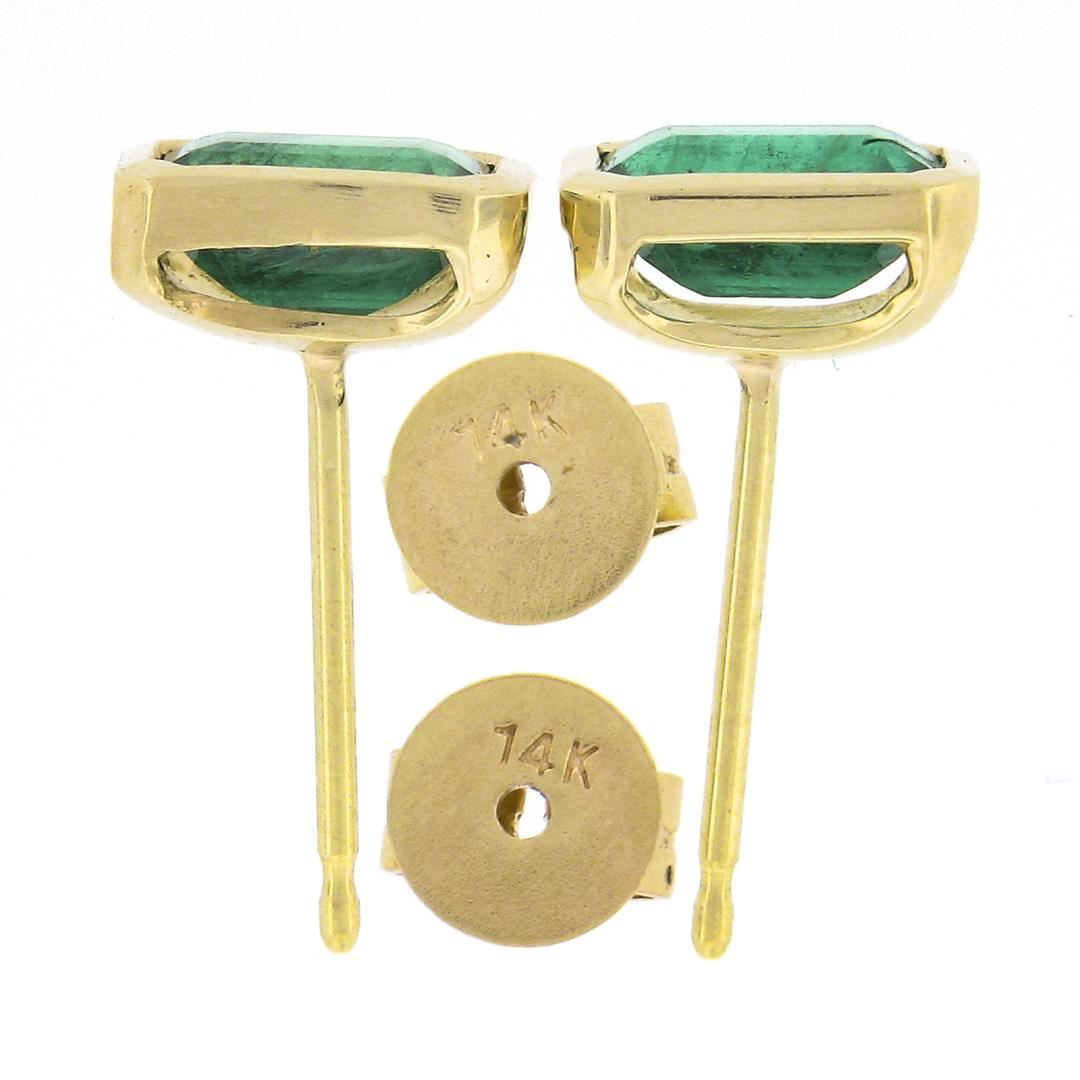 A solid 14k yellow gold stud earrings, with 2 emerald cut natural emeralds (4.2x6.25mm each - 1.30ctw). The earrings measure approximately 7.5x5.5mm and weigh a total of 1.54 grams.