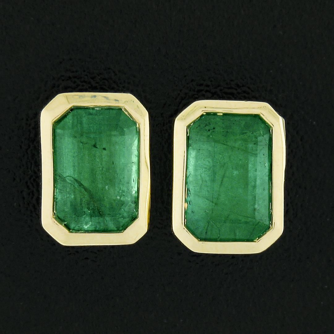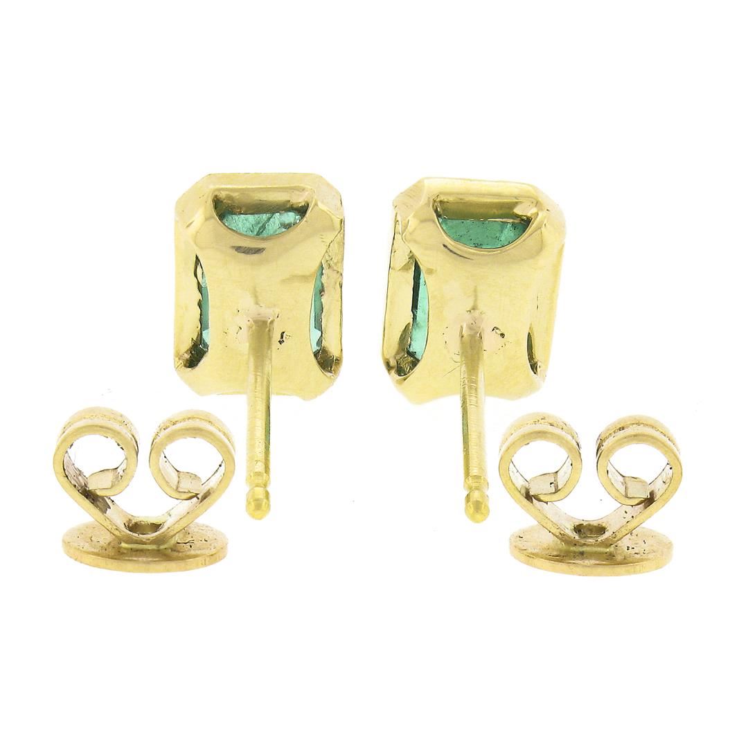 A solid 14k yellow gold stud earrings, with 2 emerald cut natural emeralds (4.2x6.25mm each - 1.30ctw). The earrings measure approximately 7.5x5.5mm and weigh a total of 1.54 grams.