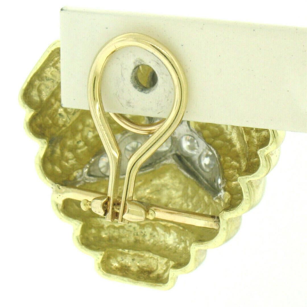 Like new 14k yellow gold triangular clip-on earrings with 1.80ctw of round diamonds (F - VS1). The earrings measure approximately 24.91x23.95mm and weigh a total of 25.60 grams.