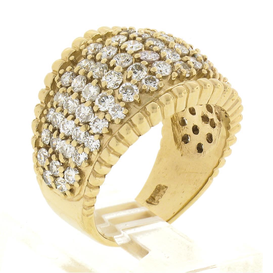 A solid 14k yellow gold cigar band ring, with 77 round cut natural diamonds (H/I - VS2-SI1; 2ctw). The ring is size 5.5, weighs a total of 8.15 grams, and measures 14.2mm wide.