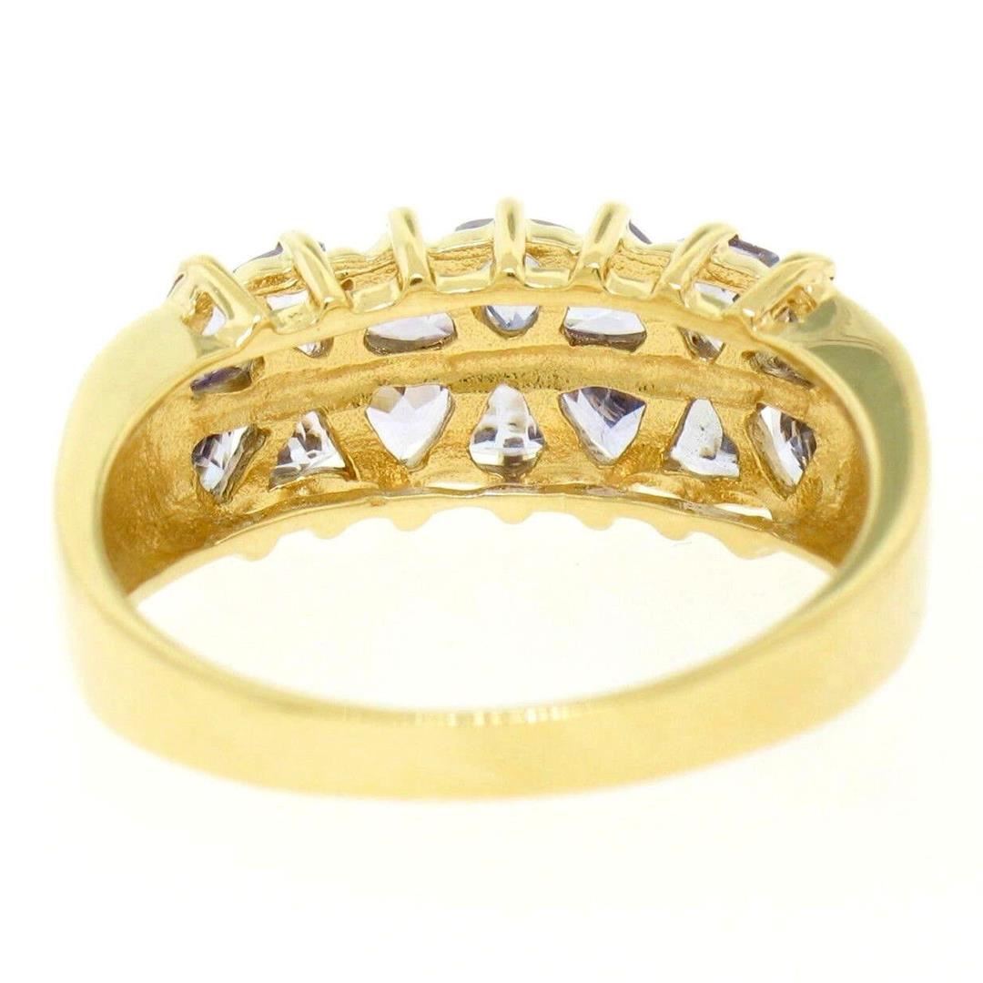 14k Yellow Gold Dual Two Row 1.40ctw 14 Trillion Cut Natural Tanzanite Band Ring. Please see photos and description for all available information. An estate solid 14k yellow gold two row ring, with 14 trillion cut natural tanzanite (1.40ctw). The ring is size 8.5, weighs a total of 4.7 grams, and measures 8.5mm wide.