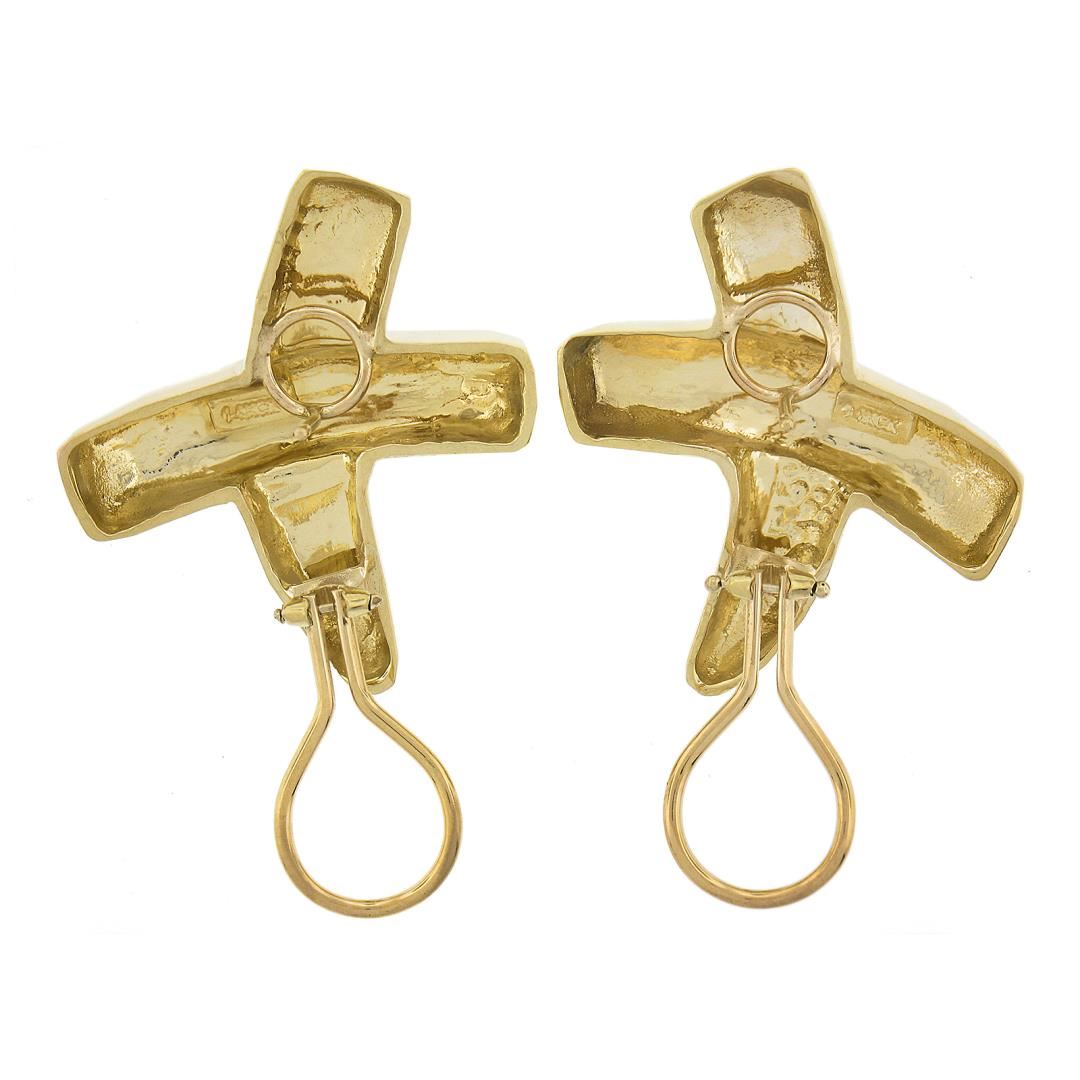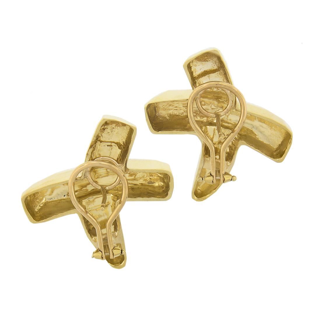 A solid 14k yellow gold X earrings. The earrings measure approximately 27.3x23mm and weigh a total of 15.0 grams.