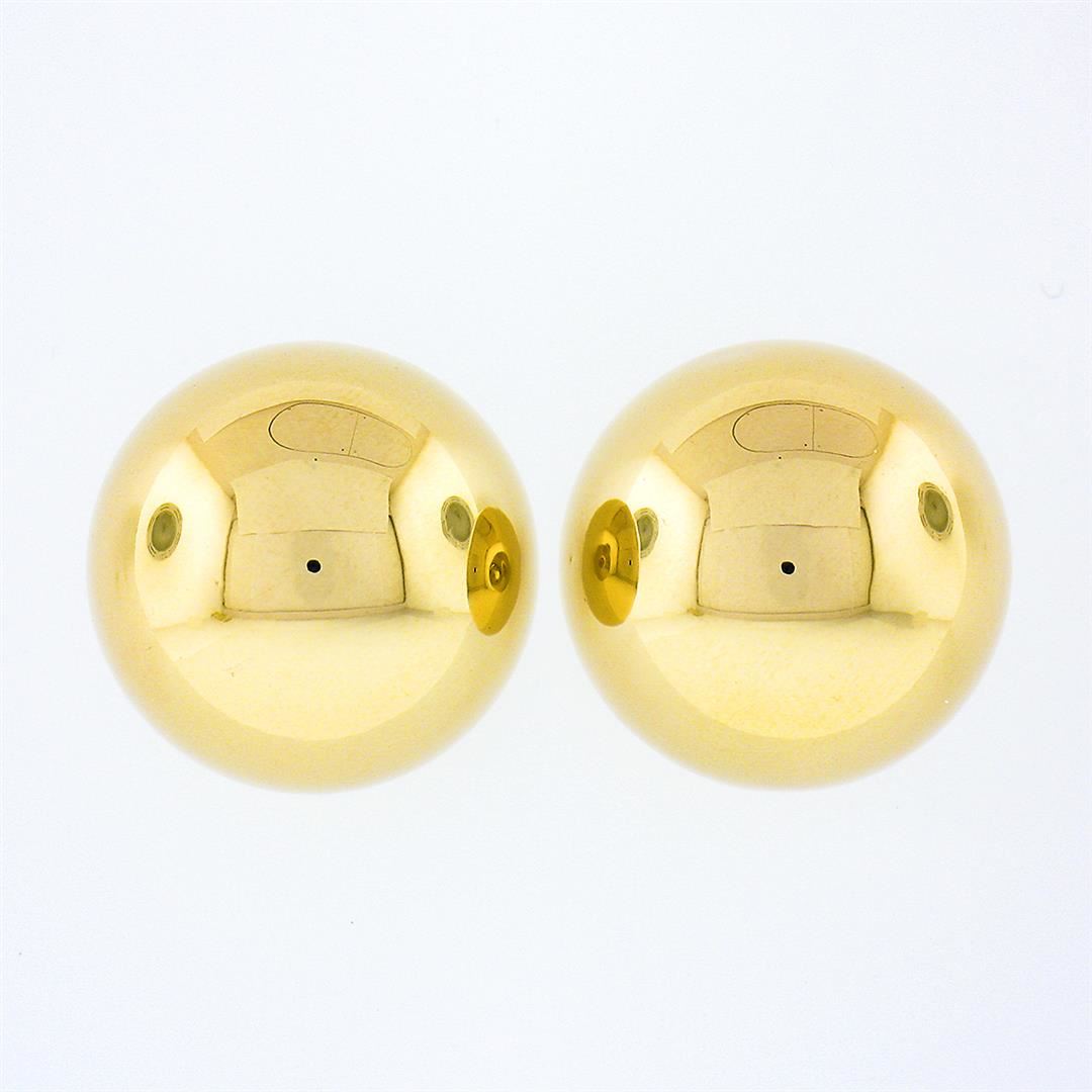 An estate solid 14k yellow gold ball stud earrings.The earrings measure approximately 14mm in diameter and weigh a total of 3.13 grams.