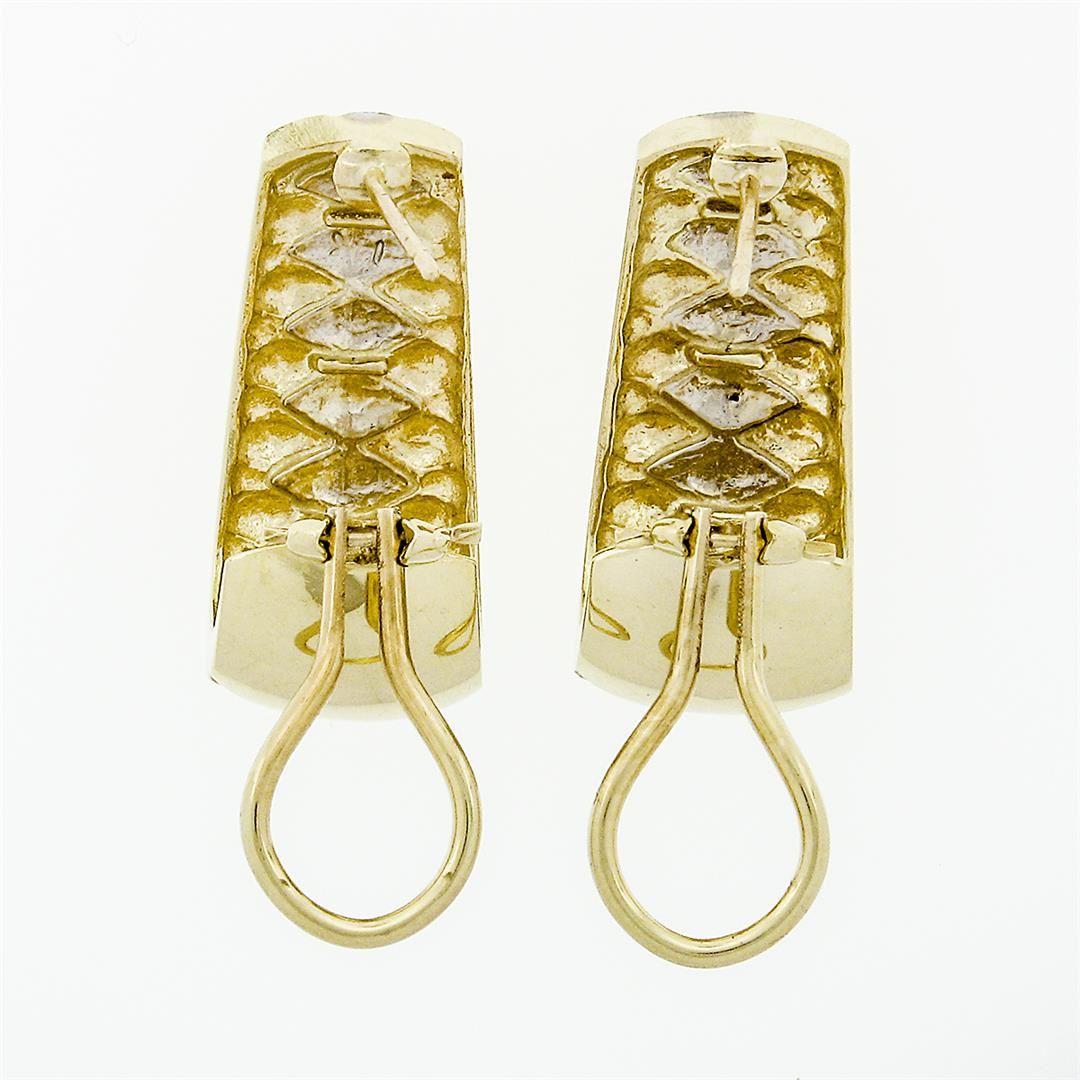 A pair of solid 14k yellow gold cuff earrings. The earrings measure approximately 24.64x11.37mm and weigh a total of 10.79 grams.