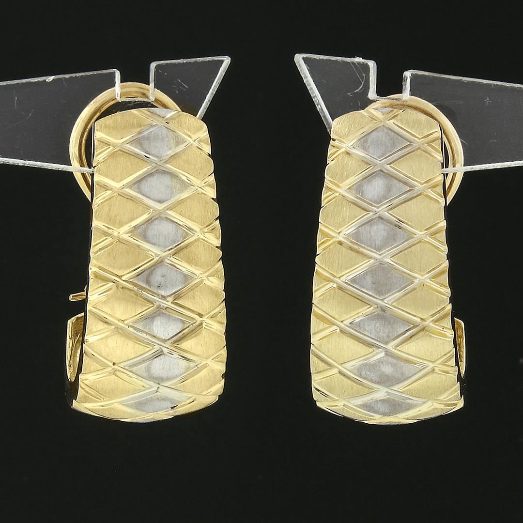 A pair of solid 14k yellow gold cuff earrings. The earrings measure approximately 24.64x11.37mm and weigh a total of 10.79 grams.