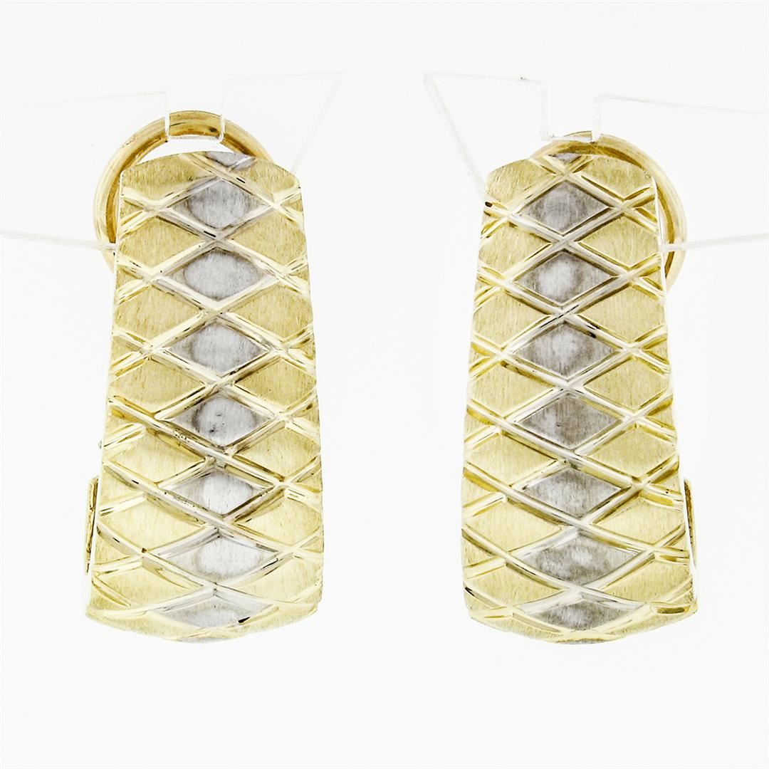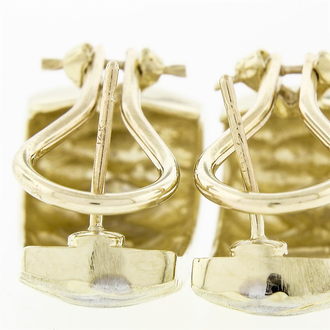 A pair of solid 14k yellow gold cuff earrings. The earrings measure approximately 24.64x11.37mm and weigh a total of 10.79 grams.