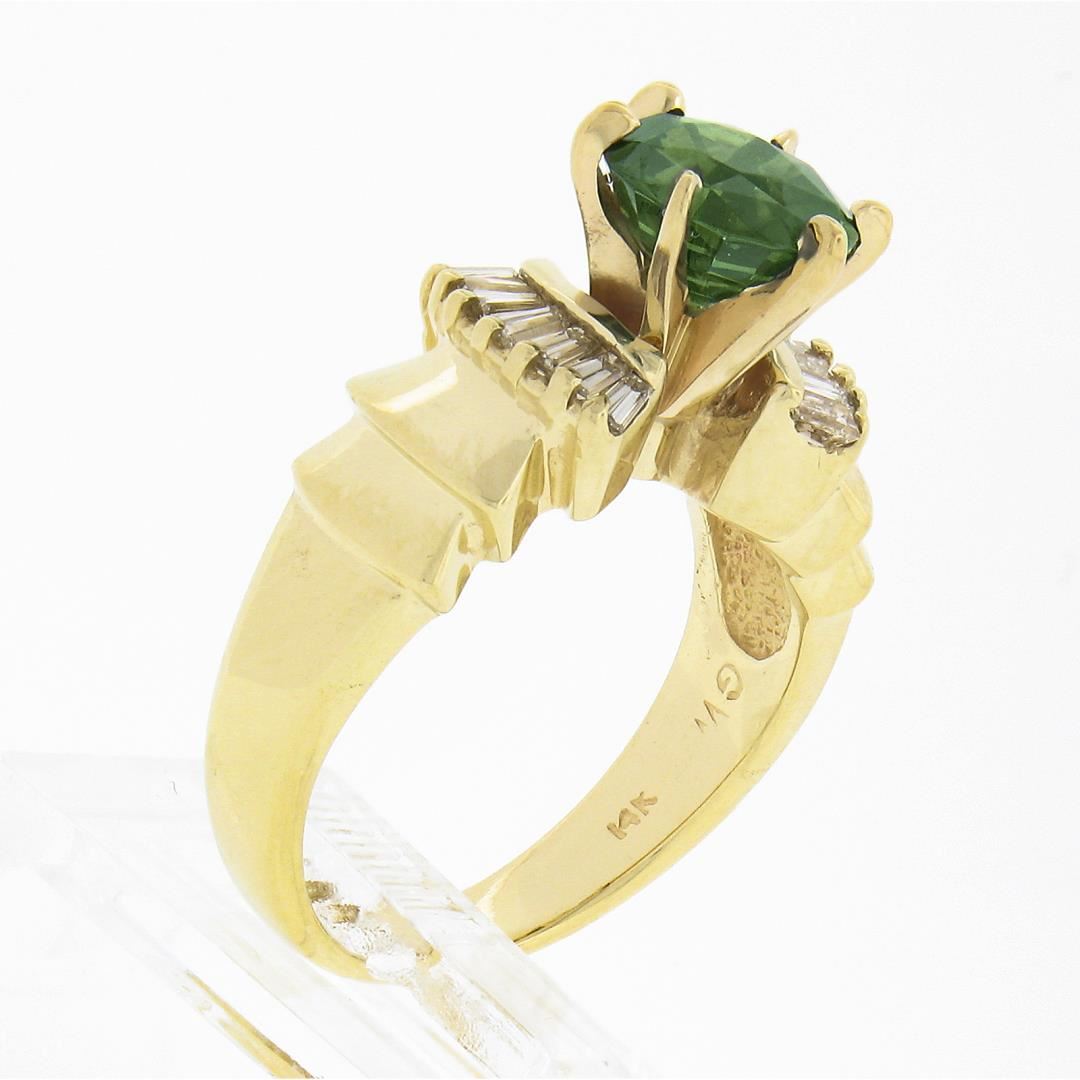 14k Yellow Gold Oval Prong Peridot Tapered Baguette Diamond Side Engagement Ring