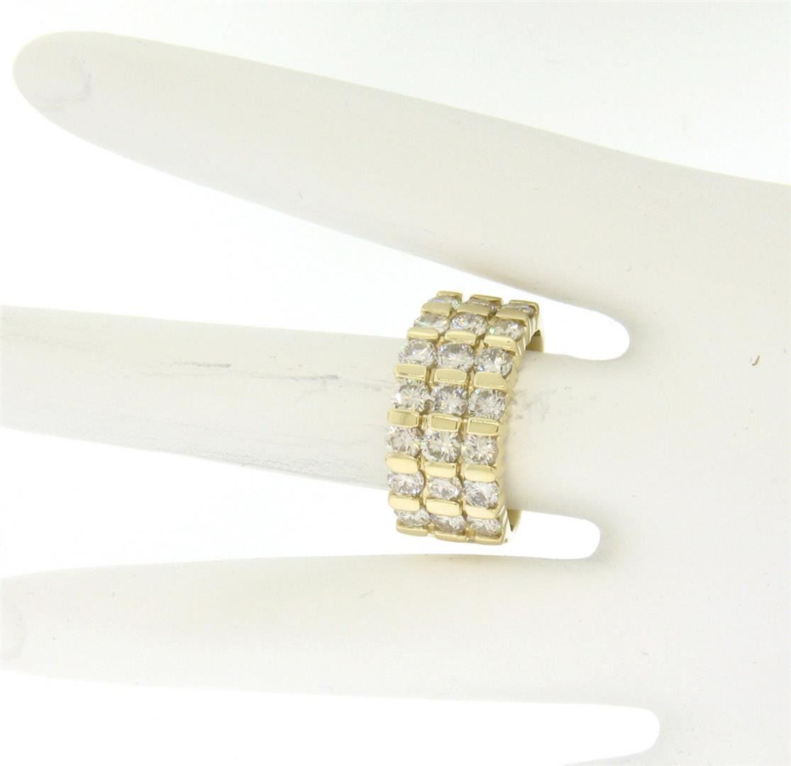 A brand new 14kt yellow gold band ring bar set with 2.52ctw of round diamonds (F - VS2). The ring is size 5, weighs a total of 8.6 grams, and measures 10.2mm wide.