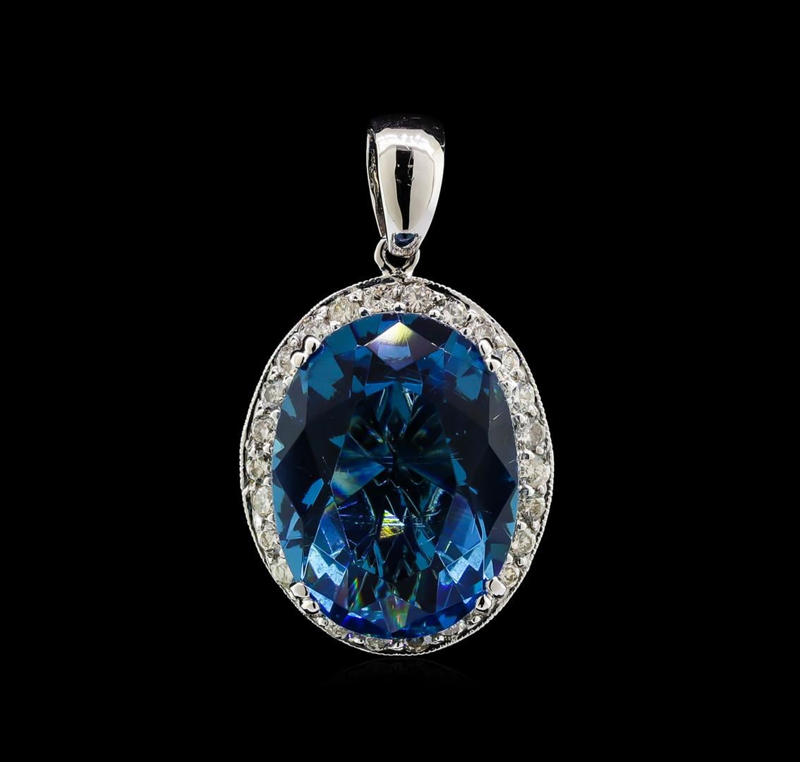 One pendant featuring: 14KT white gold weighing 7.51 grams containing one blue topaz with a total weight of 15.00ct and diamonds with a total weight of 0.94ct.