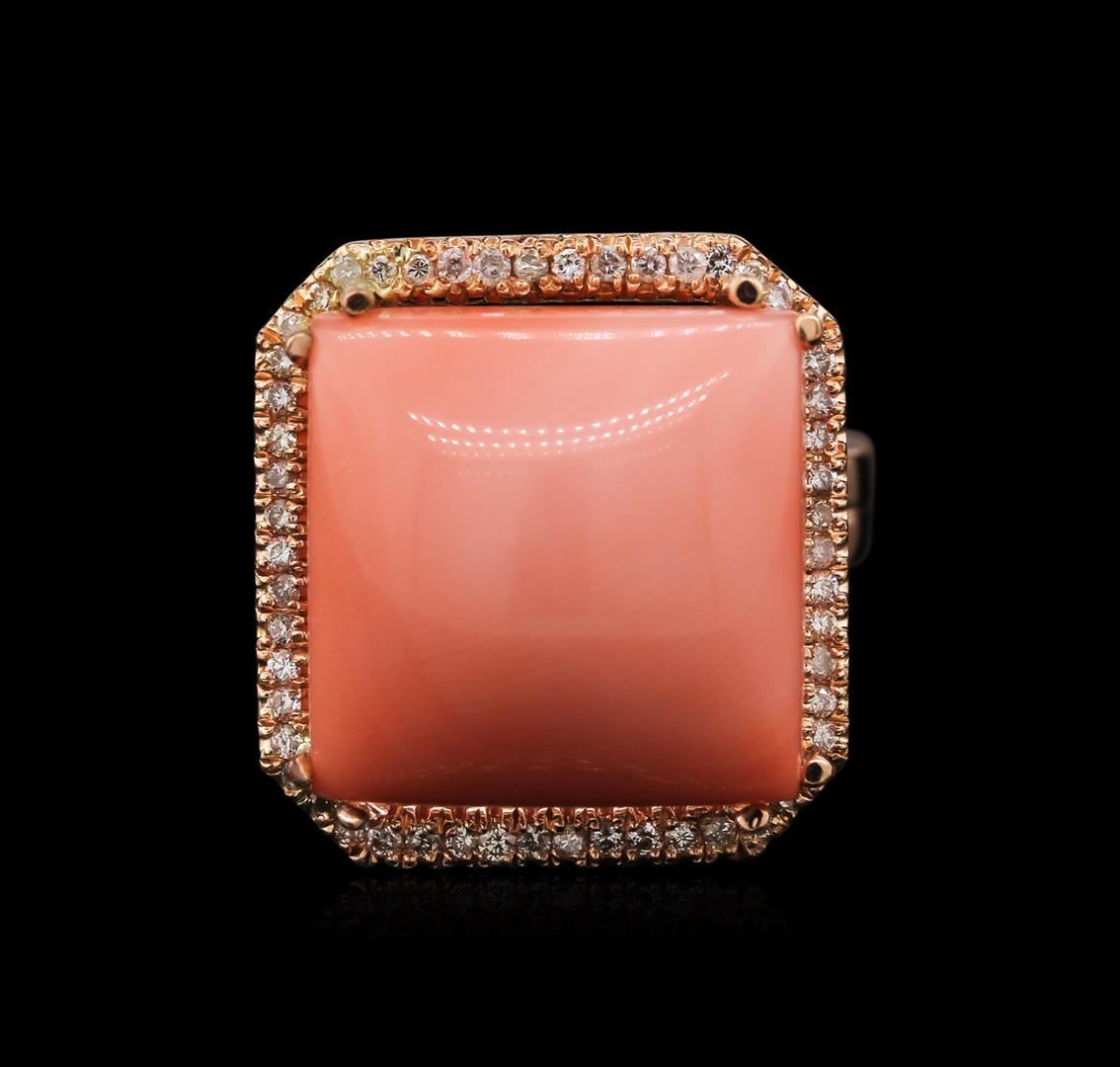One ring featuring: 14KT rose gold weighing 6.05 grams containing one pink coral center stone with a total weight of 15.11ct and 54 diamonds with a total weight of 0.28ct.