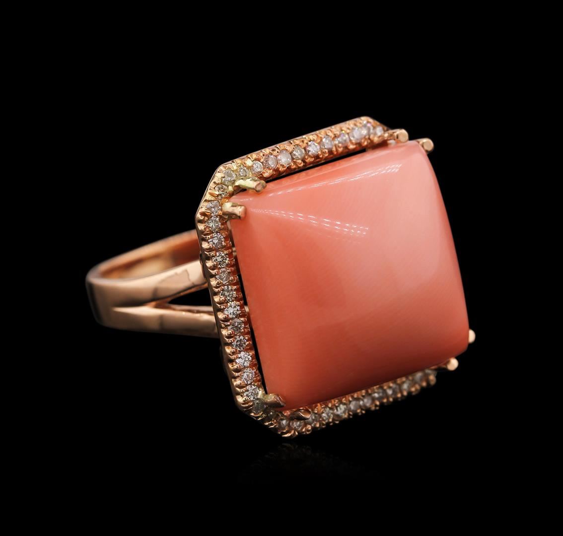 One ring featuring: 14KT rose gold weighing 6.05 grams containing one pink coral center stone with a total weight of 15.11ct and 54 diamonds with a total weight of 0.28ct.