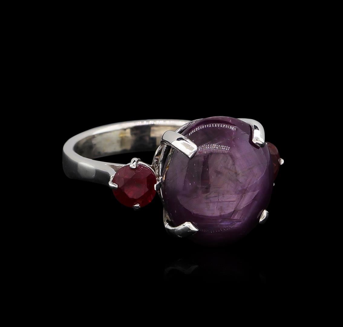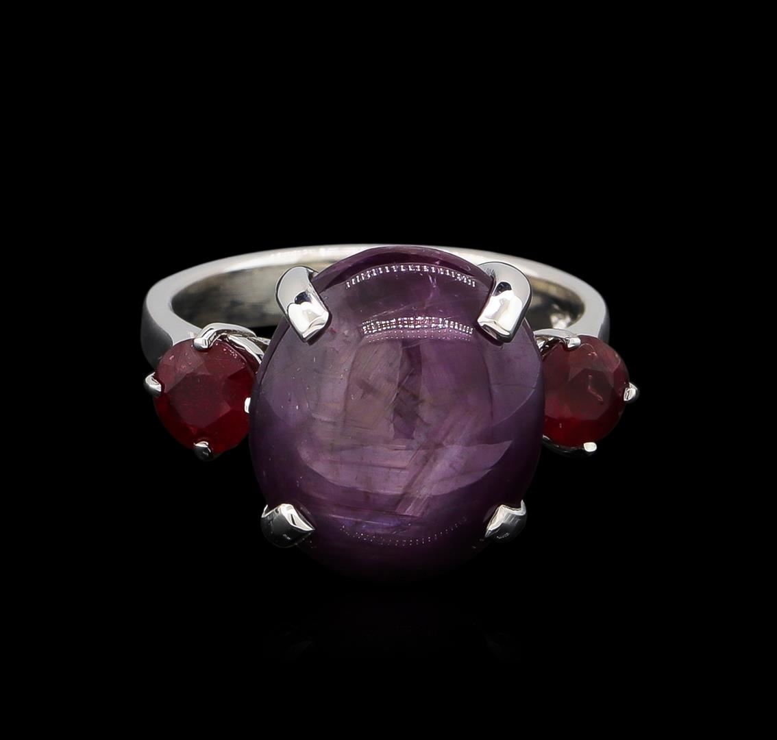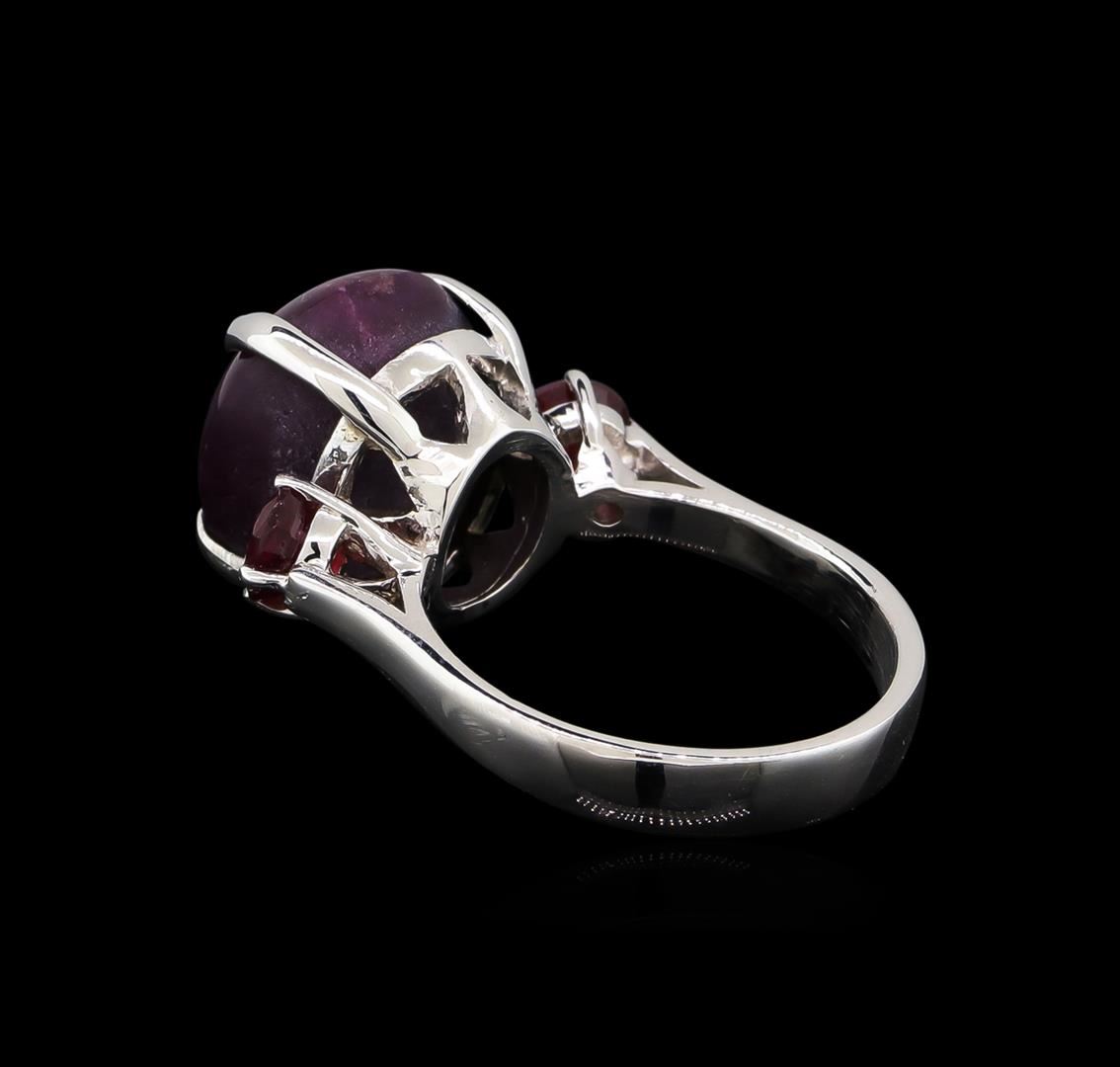 One ring featuring: 14KT white gold weighing 4.30 grams containing one ruby with a total weight of 14.13ct and two rubies with a total weight of 1.12ct.