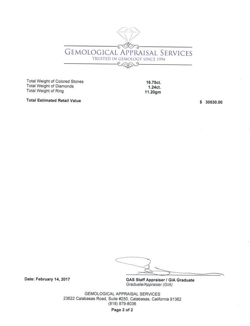 One electronically tested 14KT rose gold lady's cast fashion ring with a triple split shank basket halo with a bright polish finish. Condition is new, good workmanship. The featured lady's ring has a shank measuring 2.95 millimeters wide. identi?ed with markings of "K14". Containing: One prong set oval modified brilliant cut natural tanzanite, measuring 17.76 x 12.75 x 10.08mm, (depth est.) 4% bulge factor, approximate weight of 16.75ct., clarity is eye clean, dark, strong, bluish violet color, (GIA bV 7/5), cut is very good. Transmitting light with no distortion, transparent. Colored gemstones are presumed to have been subjected to commonly used enhancement processes. Graded loose prior to setting in the GIA Laboratory, Report #2151952122. Six prong set round brilliant out diamonds, measuring 2.10 - 2.00 x 1.27mm (depth est.) approximate total weight of 6 Stones = 0.20 ct Graded in the setting. Clarity SI-2 to I-1 Color H - I Cut Good Two prong set round brilliant cut diamonds, measuring 1.60 - 1.50 x 0.96mm (depth est.) approximate total weight of 2 Stones = 0.03ct. Graded in the setting, Graded in the setting. Clarlty SI-2 to l-1 Color H - I Cut Good. One hundred fourteen prong set round brilliant cut diamonds, measuring 1.40 - 1.30 x 0.81mm (depth est.) approximate total weight of 114 Stones = 1.01ct. Graded in the setting. Clarity SI-2 to I-1 Color G - I Cut Good Total Weight of Colored Stones 16.75ct. Total Weight of Diamonds 1.24ct. Total Weight of Ring 11.20 gm Total Retail Replacement Value $ 30,530.00 GAS Appraised.