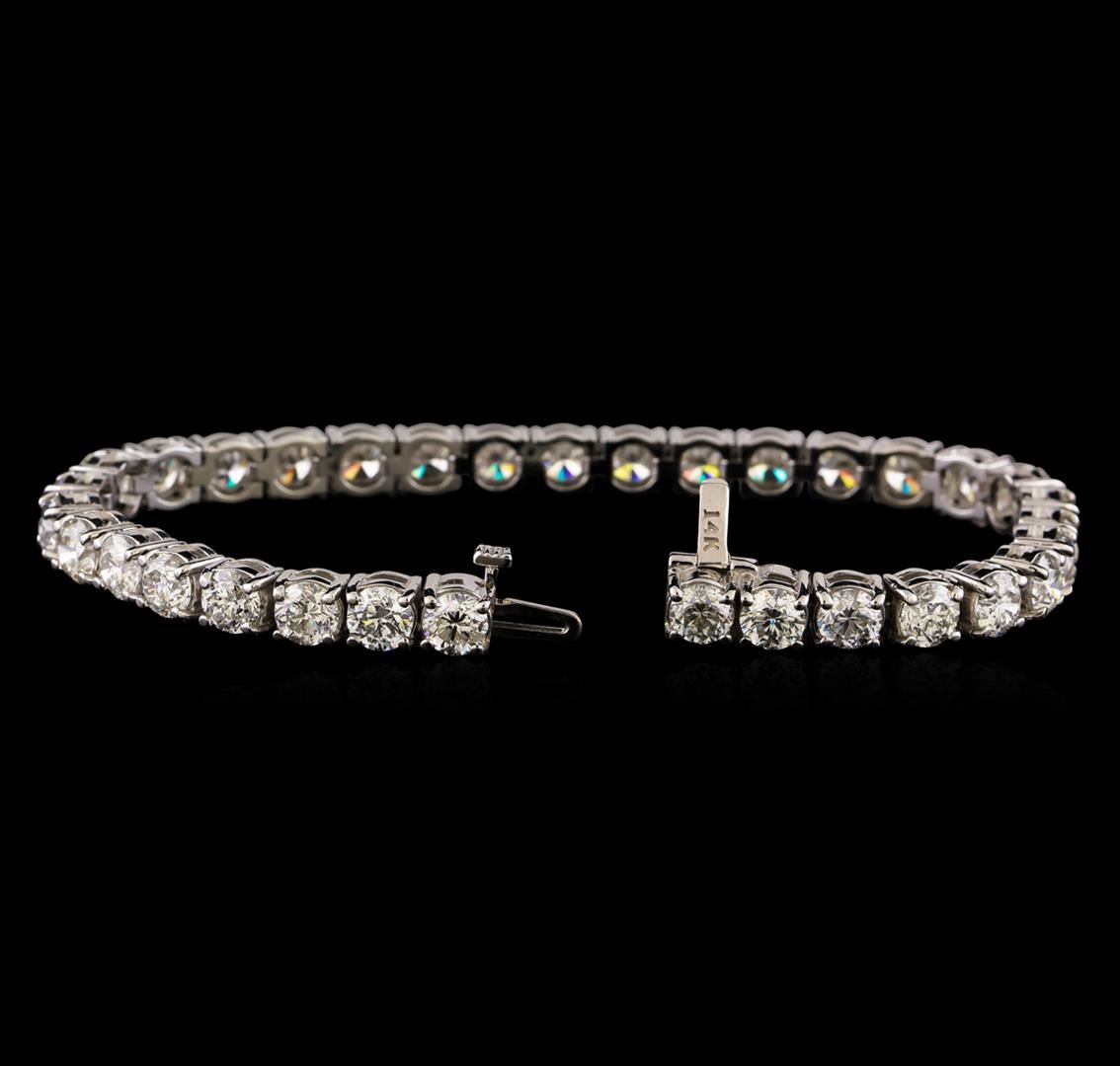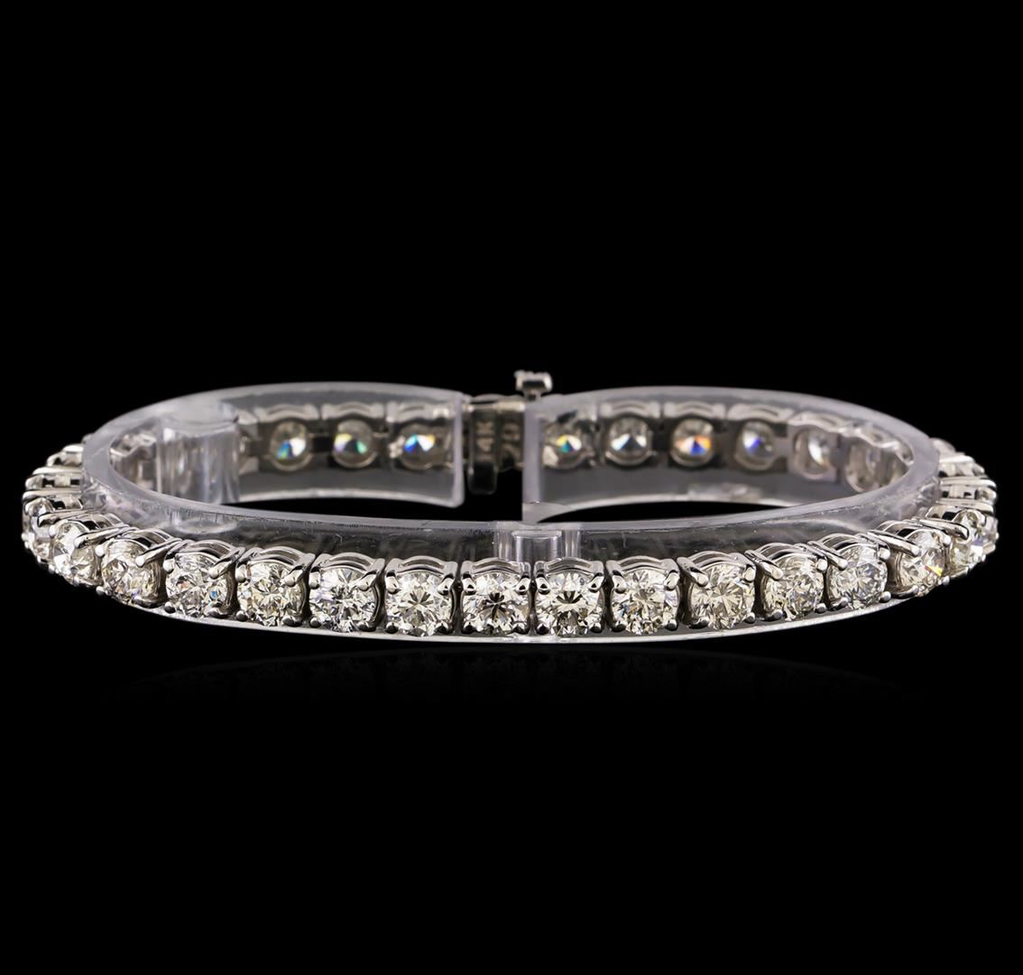 One electronically tested 14KT white gold lady's combination cast & assembled fashion tennis bracelet with a tongue clasp with foldover safety with a bright polish finish. The featured lady's bracelet measures 7 inches in length. Identified with markings of "14K". Condition is new, good workmanship. Containing: Thirty-Three prong set round brilliant cut diamonds, measuring 5.00 - 4.89 x 3.30mm (depth est.) , 3.00.%. GTCF approximate total weight of 33 Stones = 16.85ct. Graded in the setting. Clarity: SI-1 to SI-2. Color: H - I. Cut Good. Total Weight of Diamonds 16.85ct. Total Weight of Tennis Bracelet 21.90gm. GAS Appraised at $119,250.00.
